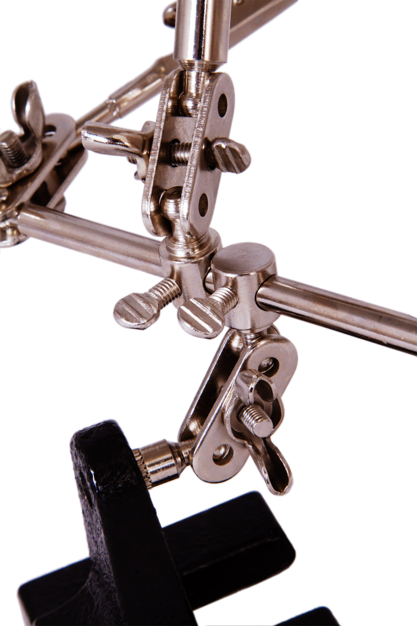 V strede konštrukcie je umiestnená okrúhla šošovka vyrobená z optického plastu, ktorá poskytuje 4-násobné zväčšenie. Dá sa otáčať v rôznych uhloch a posúvať pozdĺž vodorovnej tyče, čím si vyberiete najvhodnejšiu polohu pre prácu. Po stranách sú držiaky s klipsami. V ních sa dá upevniť takmer akýkoľvek malý predmet.