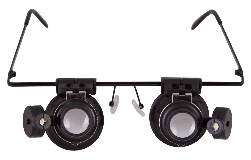 Lupa Levenhuk Zeno Vizor G2 je lupa na okuliarovom ráme so šošovkami pre obe oči. Každá šošovka má 20-násobné zväčšenie. Šošovky je možné posúvať vodorovne alebo ich odklopiť do strany. Pomocou LED osvetlenia dokážete osvetliť pracovnú plochu - pri nedostatočnom vonkajšom osvetlení je táto funkcia obzvlášť užitočná. Batérie pre osvetlenie sú už súčasťou balenia.