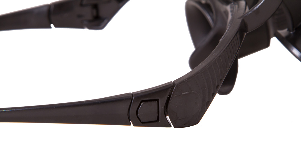 Šošovky tesne priliehajú k očiam, čo zabraňuje bočnému osvetleniu pri pozorovaní. V prípade potreby je možné šošovky vyklopiť nahor a pokračovať v práci bez zväčšenia. Môžete tiež vyklopiť iba jednu šošovku, ak chcete vidieť oblasť so zväčšením a bez zväčšenia súčasne. Zabudované osvetlenie je užitočné pri práci v tmavých miestnostiach. Dve LED diódy sú zabudované v pravej a ľavej šošovke, ich svetlo je možné presne nasmerovať do požadovanej oblasti.