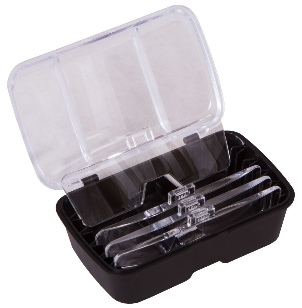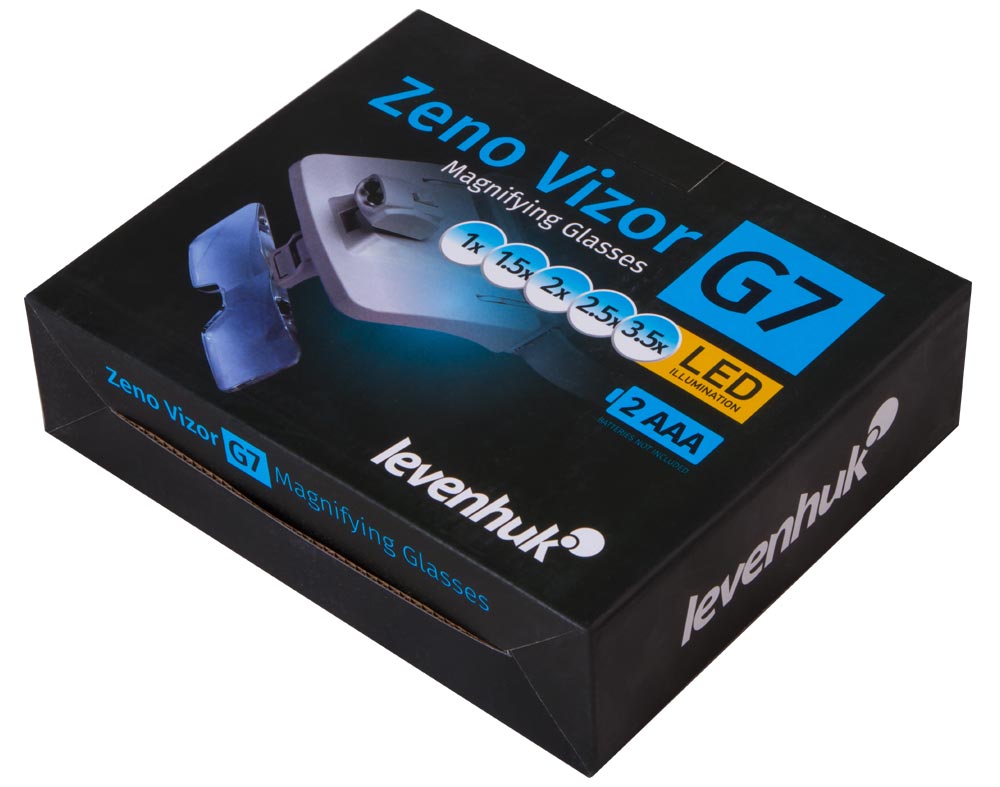 Levenhuk Zeno Vizor G7 je lupa aj ochranné okuliare pre prácu. Je vybavená piatimi vymeniteľnými šošovkami s rôznym zväčšením od 1 do 3,5 krát. Šošovka so zväčšením 1x sa používa na ochranu zraku pri montážnych prácach, šošovky s väčším zväčšením možno použiť na prezretie mikroelektroniky alebo opravu hodinových strojčekov.