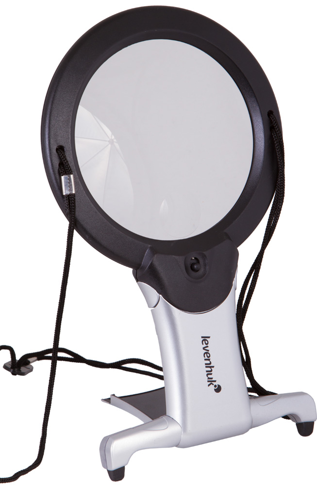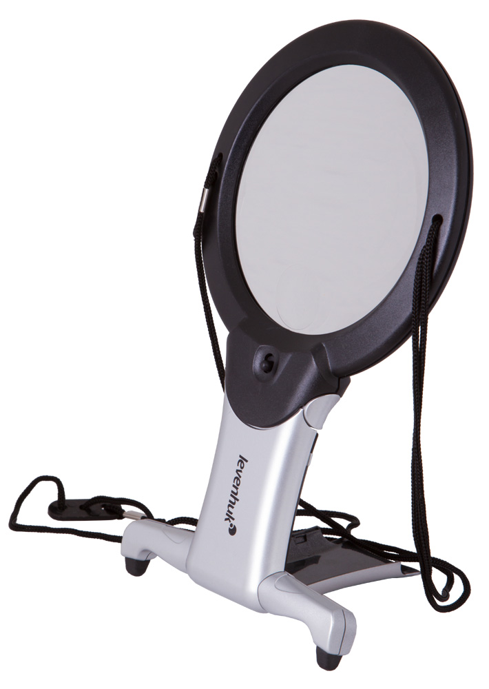 Lupa je vybavená šnúrkou na krk a stolovým stojanom, čo umožňuje používanie bez nutnosti držania v ruke. Toto riešenie je ideálne pre presné a dlhodobé činnosti.