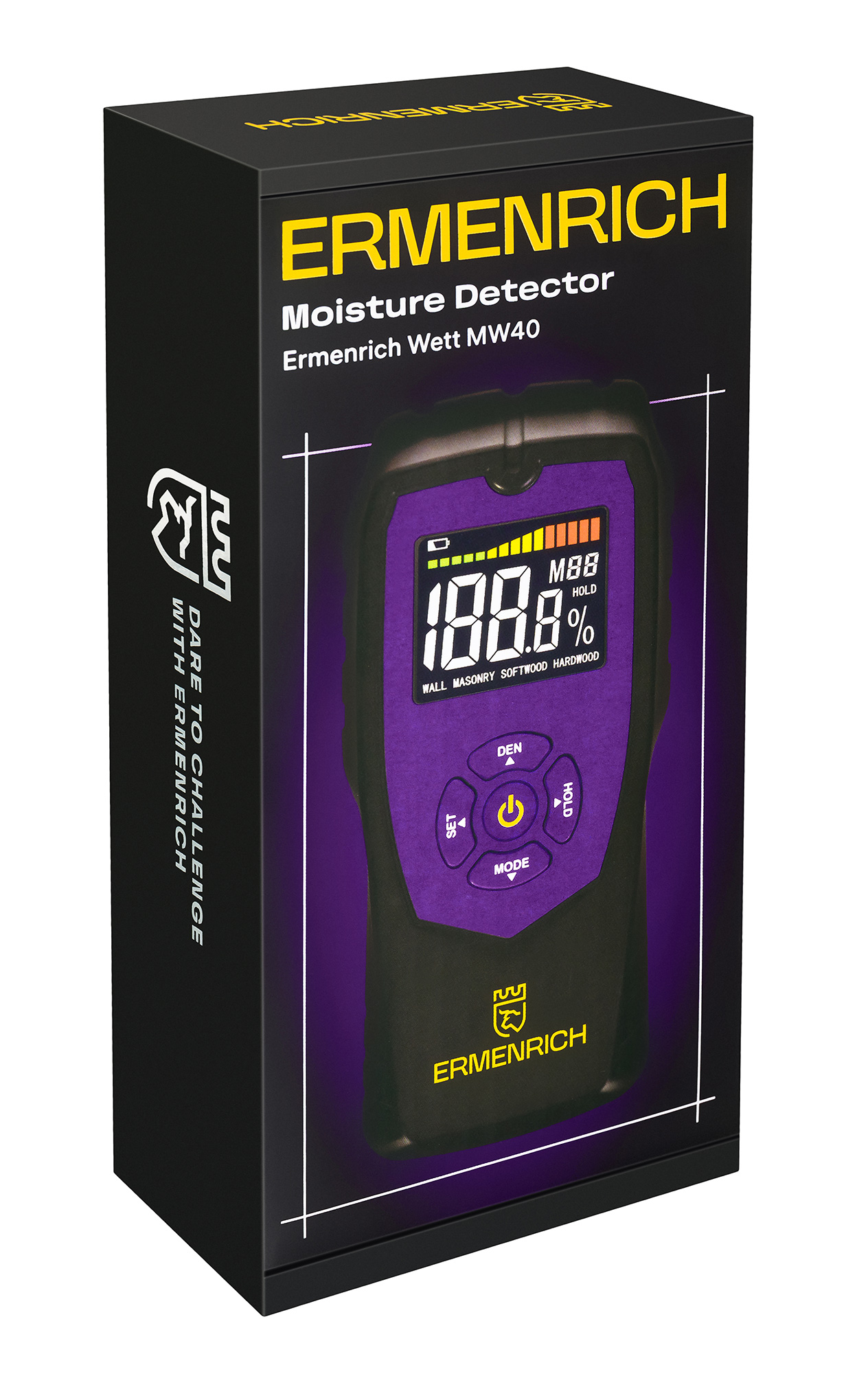 Ermenrich Wett MW40 je bezkolíkový detektor vlhkosti (vlhkomer), čo znamená, že nepoškodzuje povrch meraného materiálu. Prístroj možno použiť na materiály z dreva, sadrokartónu, betónu atď. Je ideálny na každodenné použitie, opravárenské práce v domácnosti alebo na chate, ako aj v stavebníctve a výrobe, keď potrebujete merať vlhkosť materiálov, konštrukcií a výrobkov.