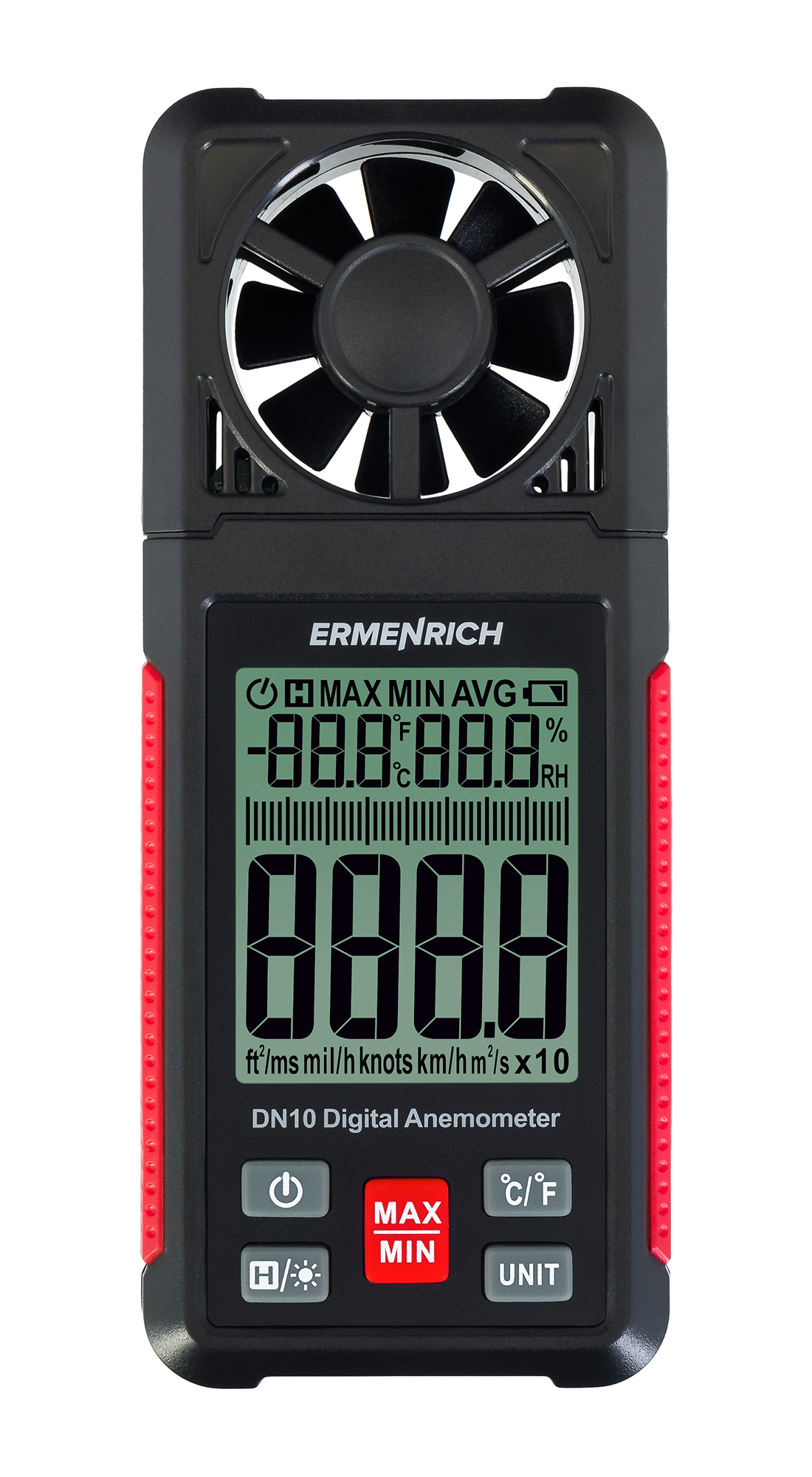 Digitálny anemometer Ermenrich Seek DN10 je profesionálny merací prístroj, ktorý umožňuje sledovať rýchlosť prúdenia vzduchu, teplotu a vlhkosť vo vonkajšom alebo vnútornom prostredí. Prístroj má tiež malé rozmery, ergonomické telo a pracuje úplne autonómne.
