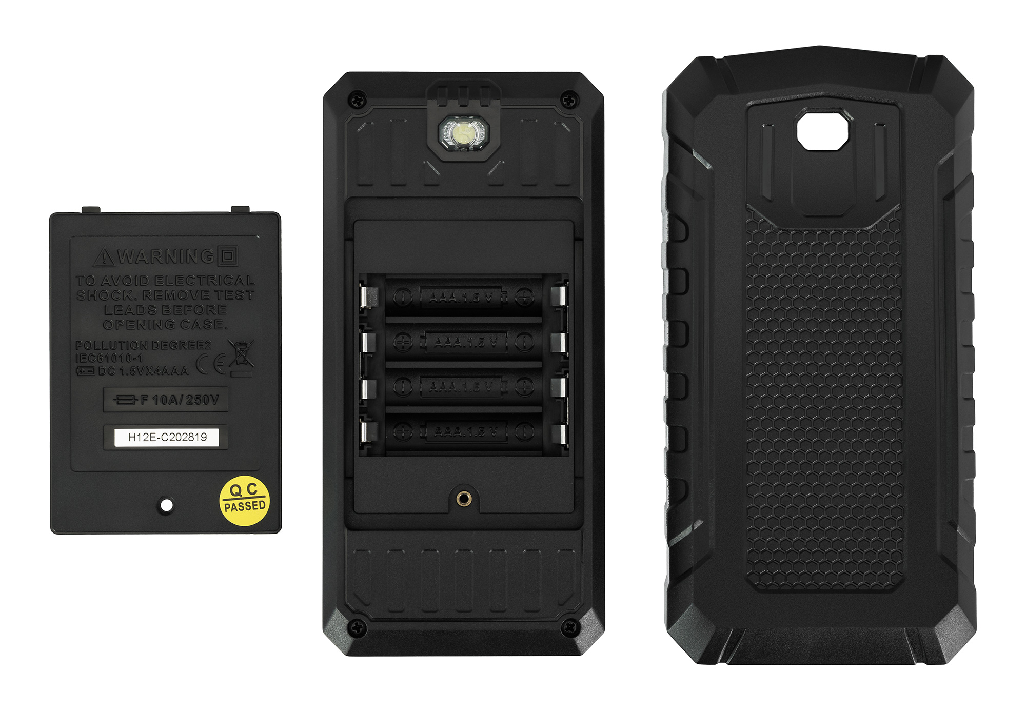 Multimeter je napájaný štyrmi štandardnými batériami. K dispozícii je baterka a funkcia automatického vypnutia, ktorá vám pomôže vyčerpať kapacitu batérií.