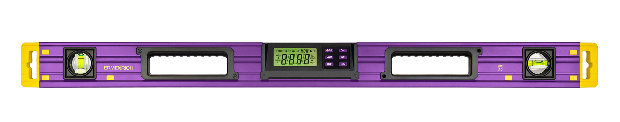 Všetky namerané hodnoty sa zobrazujú na LCD displeji a môžete si vybrať z niekoľkých merných jednotiek. Prachotesné telo prístroja Ermenrich Verk LY80 má magnetickú základňu a je jasne sfarbené, čím sa minimalizuje riziko straty prístroja na stavbe. Na úsporu energie batérií (typ AAA, 2 ks) je k dispozícii funkcia automatického vypnutia, ktorá sa aktivuje po 3 minútach nečinnosti. K dispozícii je aj indikátor stavu batérií. Dve bublinkové vodováhy uľahčujú prípravné práce a umožňujú používať prístroj aj pri vybitých batériách.