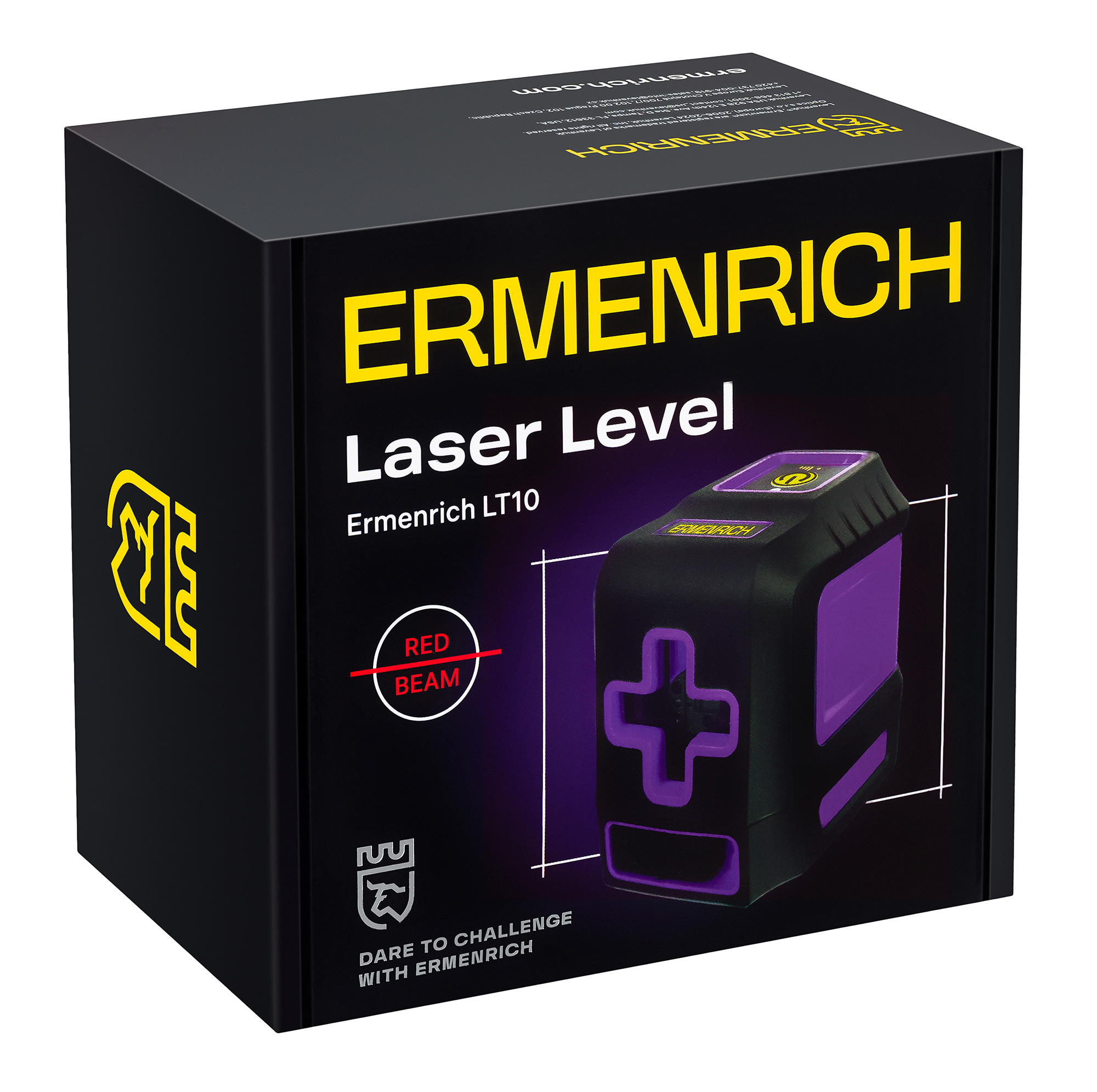 Laserový nivelačný prístroj Ermenrich LT10 generuje dve červené čiary - zvislú a vodorovnú. Môže byť použitý pre mnoho dokončovacích úloh: maľovanie, omietanie, obklady atď. Vodováha môže byť až 15 metrov ďaleko od povrchu, na ktorý sú premietané laserové lúče. Laser má rozsah cez 130°. Napájané dvojicou štandardných batérií dokáže zariadenie autonómne fungovať až 62 hodín (s LED s nízkym jasom). K dispozícii sú celkom štyri stupne jasu.