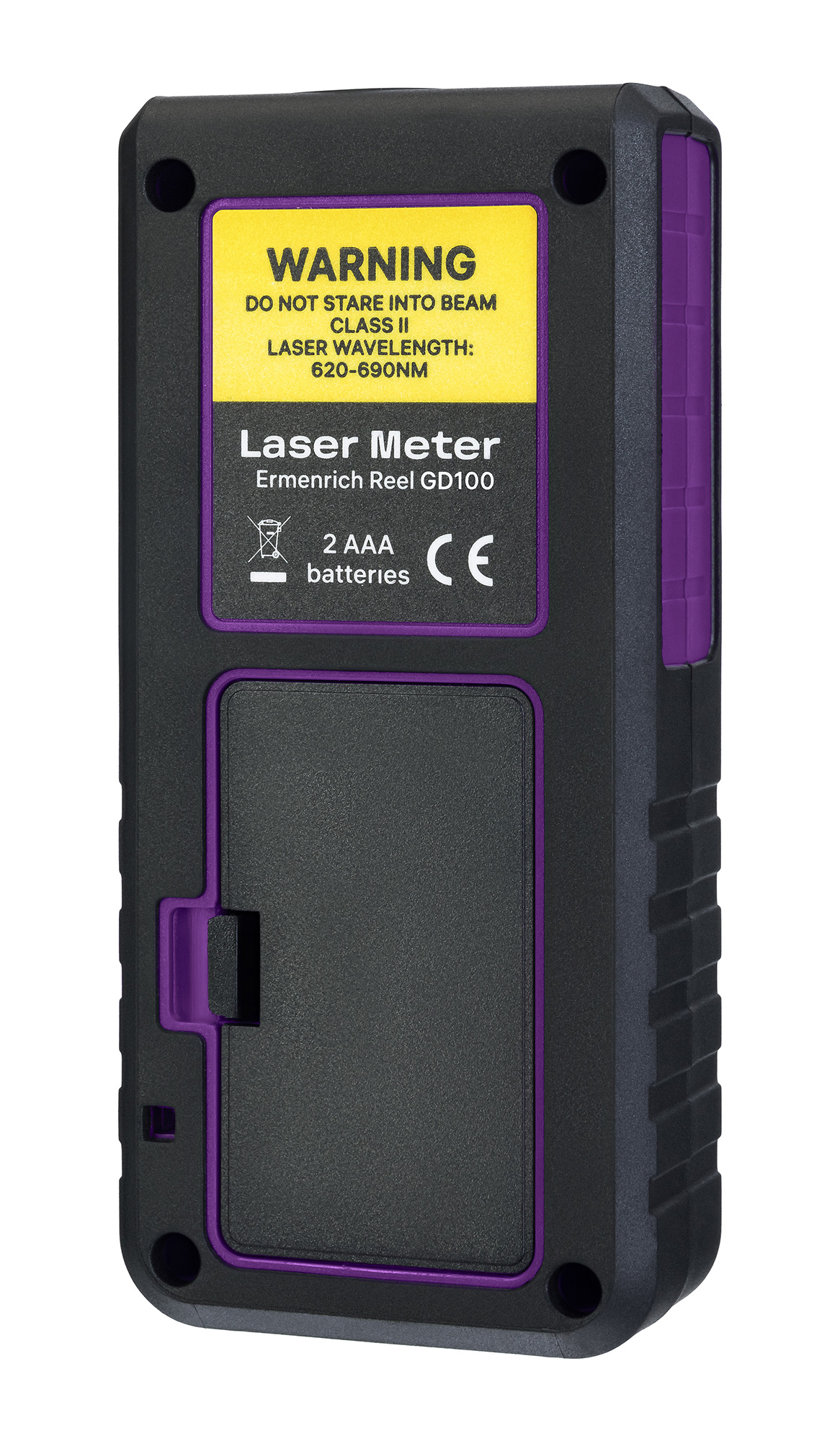 Laserový merač Ermenrich Reel GD100 je multifunkčný prístroj na riešenie širokej škály úloh v oblasti strojárstva, stavebníctva a renovačných prác. Najlepšie sa hodí na lineárne meranie a meranie plochy a objemu veľkých miestností – až do 100 metrov na jednej strane. Okrem jednorazových meraní môžete taktiež automaticky skenovať miestnosť. Údaje sa zobrazujú na trojriadkovom LCD displeji a súčasne je možné uložiť až 20 skupín výsledkov merania. Je možná prevádzka bez zvukových upozornení.