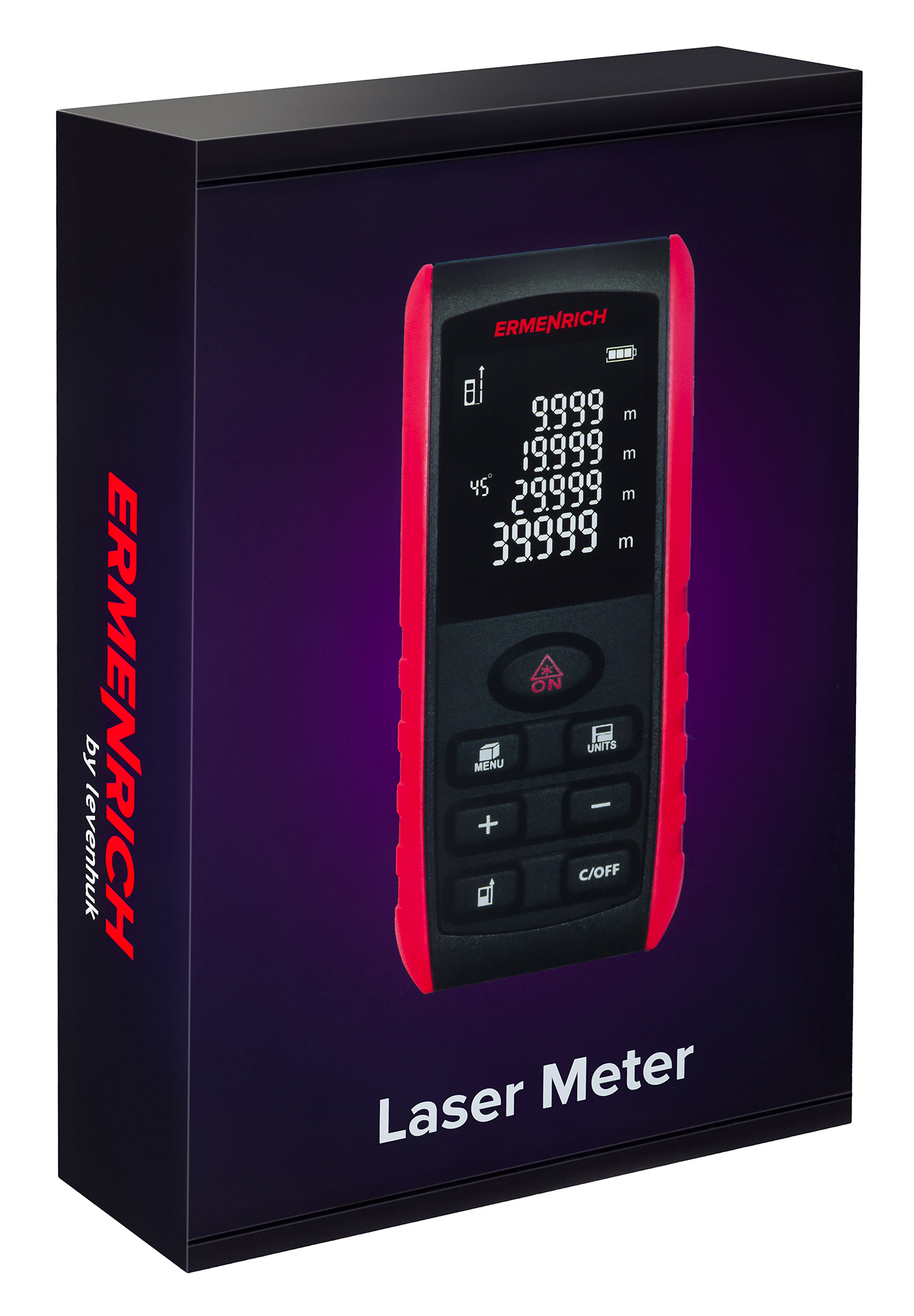 Laserový merač Ermenrich Reel GE40 je praktický, multifunkčný prístroj na stavebné, opravárenské a strojárske práce. Môžete s ním merať vzdialenosti až do 40 metrov a tiež počítať plochy, objemy a uhly. Ak potrebujete merať za sťažených podmienok, funkcia Pytagorovej vety vám pomôže vypočítať vzdialenosť z medzivýpočtov.