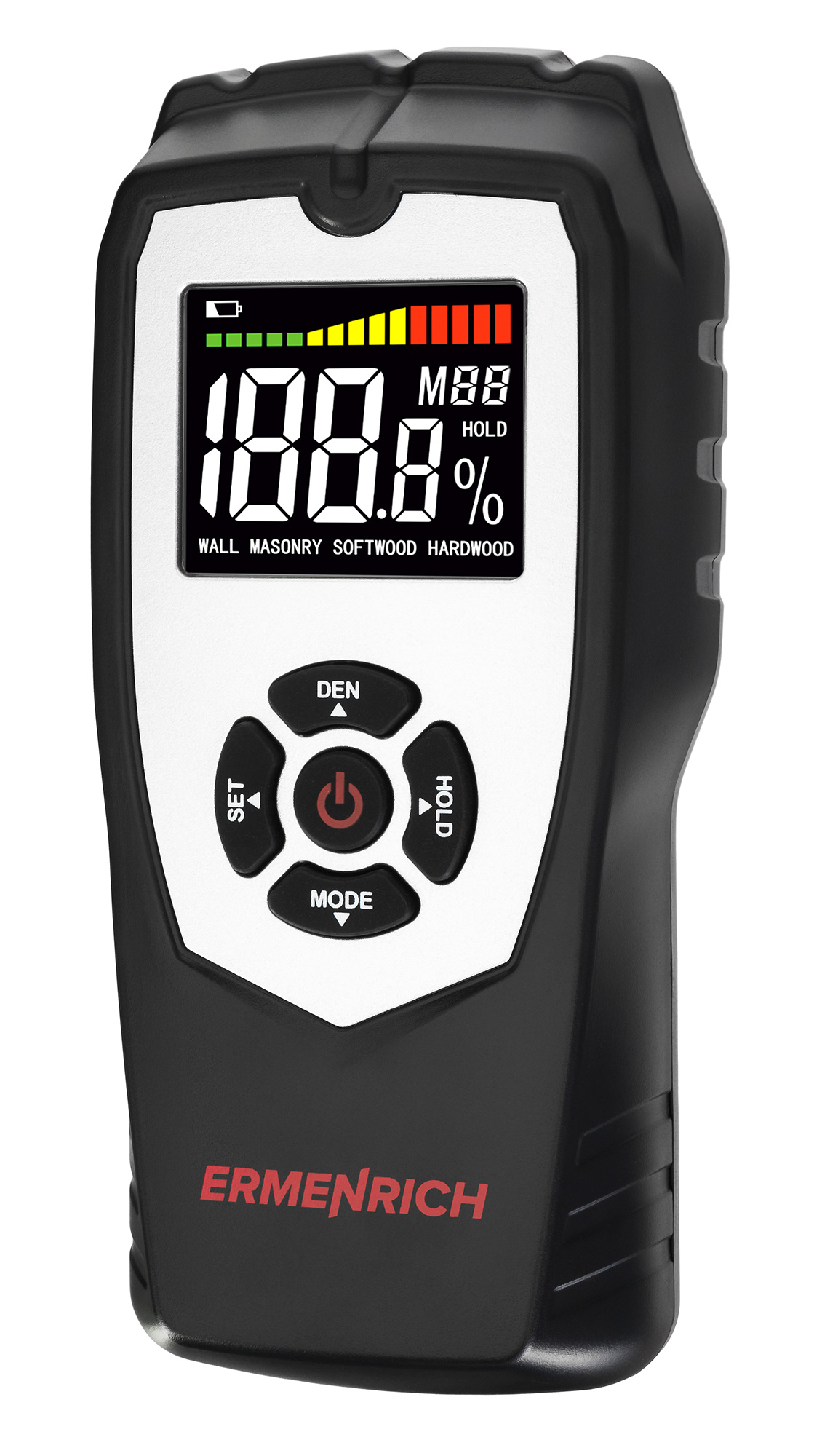 Ermenrich Wett MW40 je bezkolíkový detektor vlhkosti (vlhkomer), čo znamená, že nepoškodzuje povrch meraného materiálu. Prístroj možno použiť na materiály z dreva, sadrokartónu, betónu atď. Je ideálny na každodenné použitie, opravárenské práce v domácnosti alebo na chate, ako aj v stavebníctve a výrobe, keď potrebujete merať vlhkosť materiálov, konštrukcií a výrobkov.