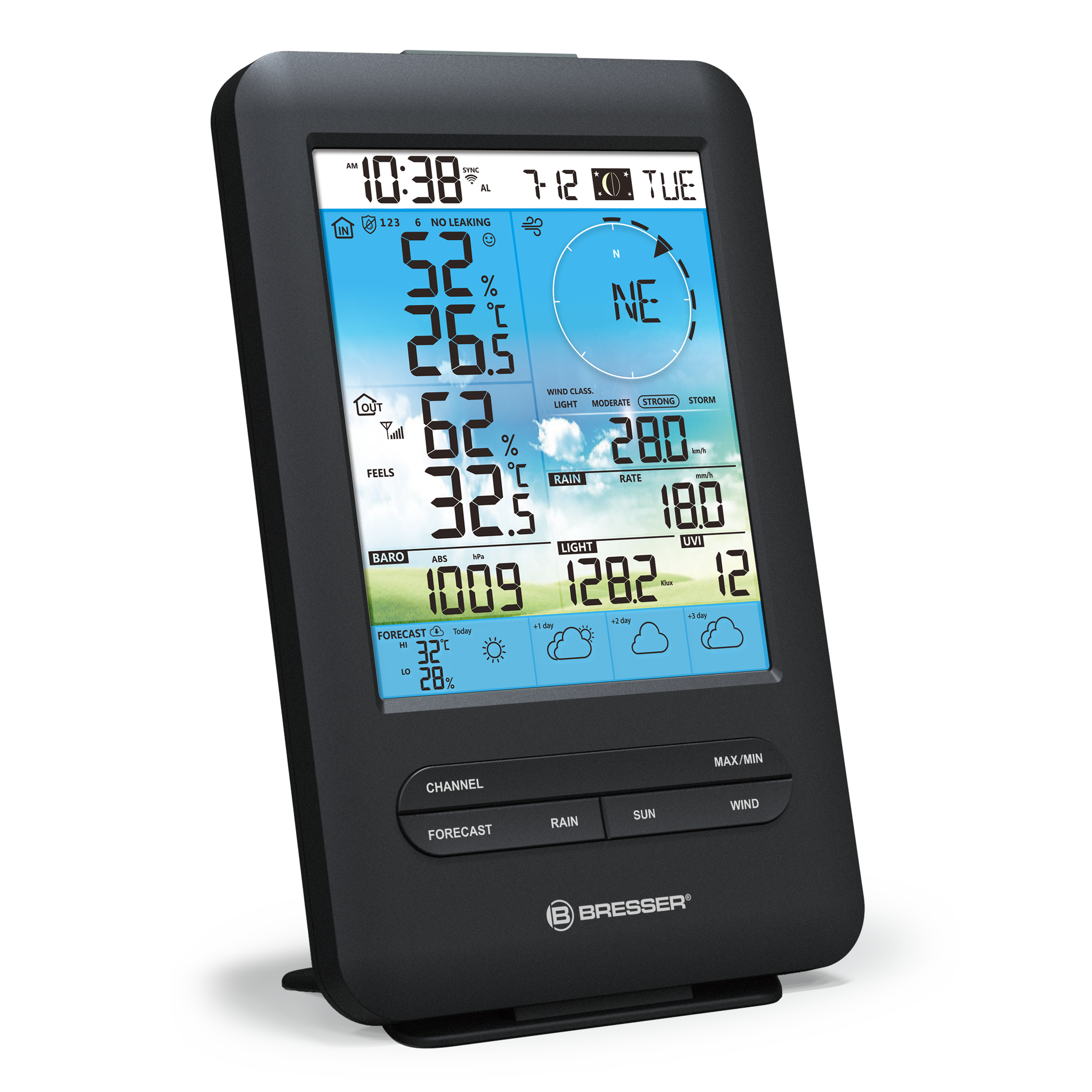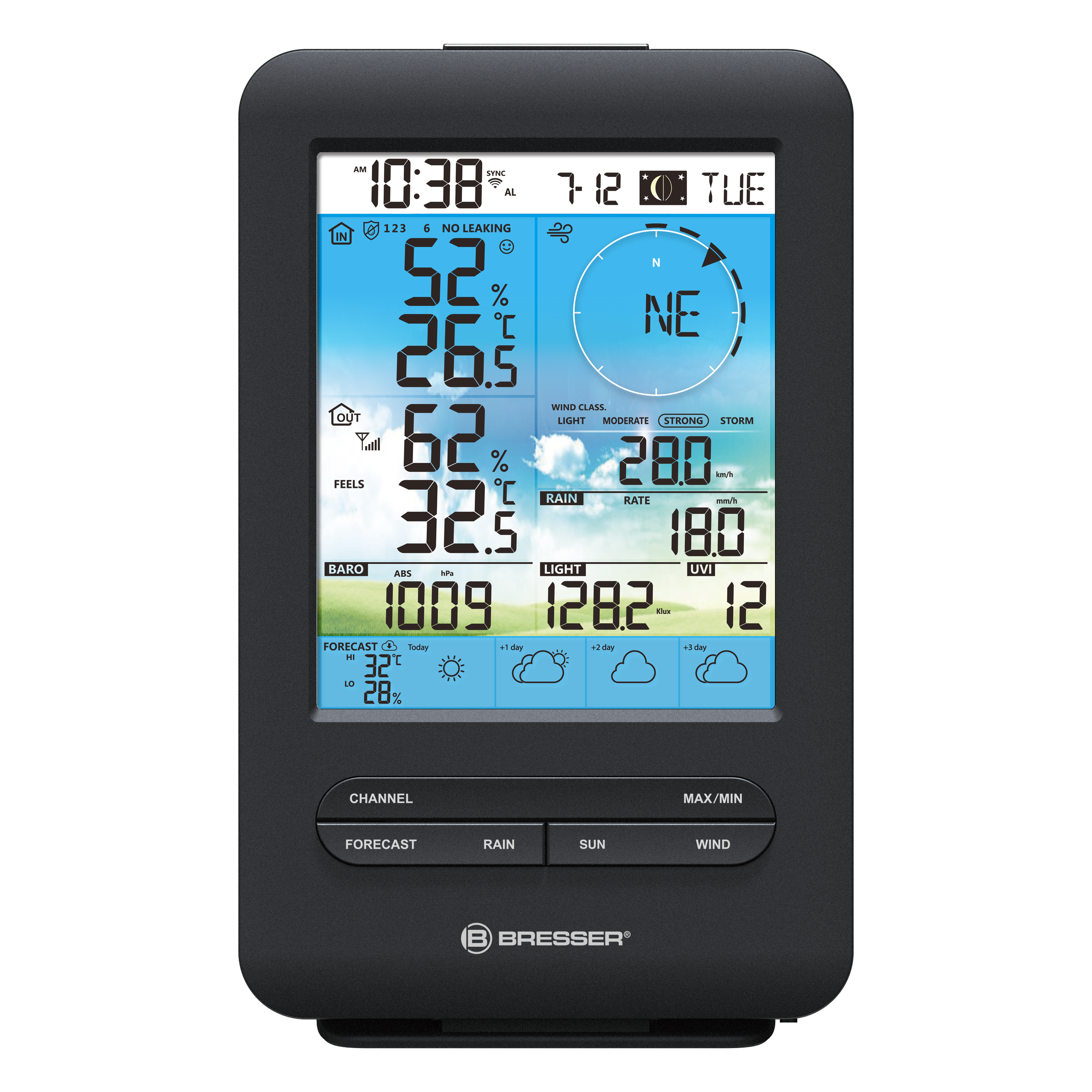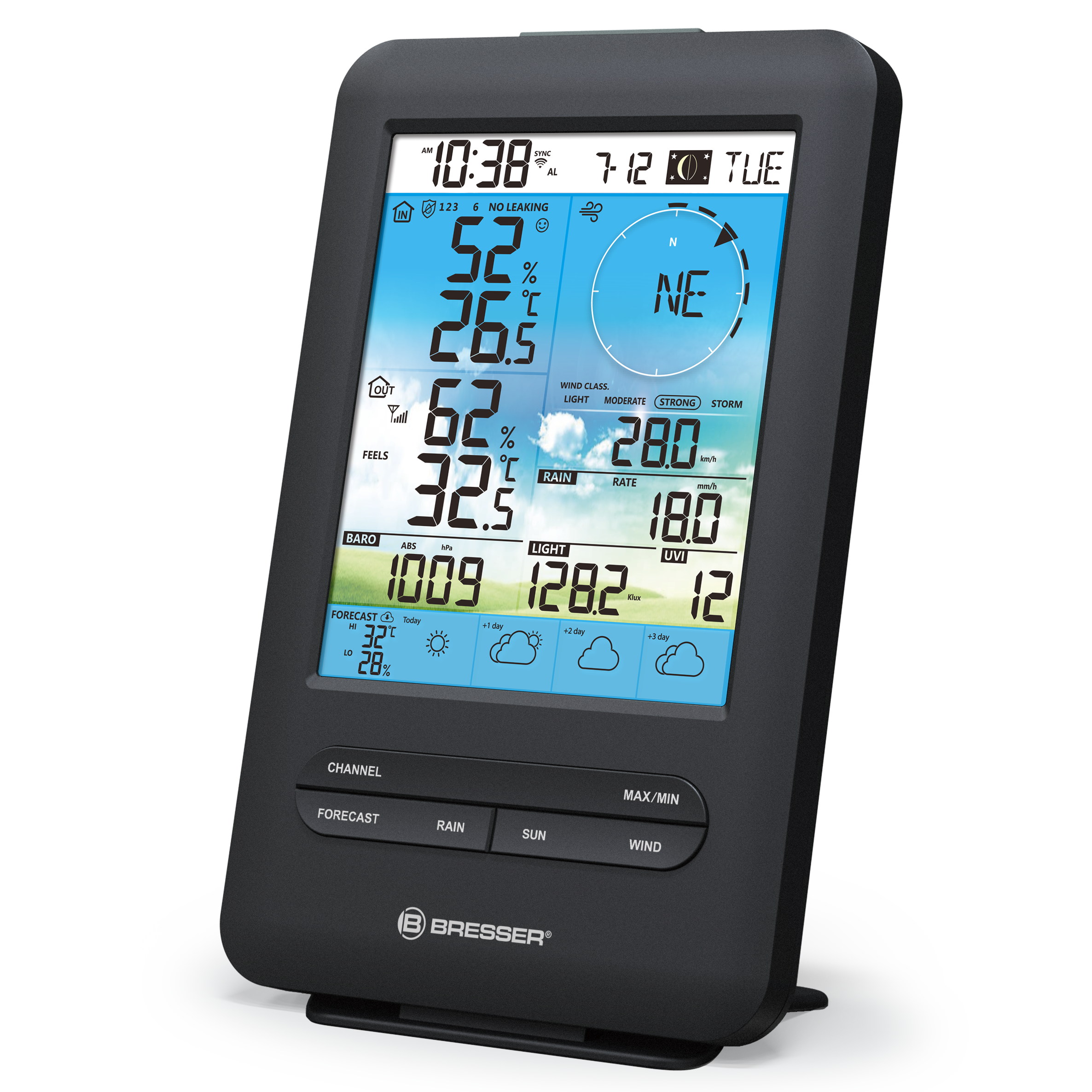 S touto prídavnou základňovou stanicou pre vaše 4-dňové meteorologické centrum 4CAST WLAN od spoločnosti BRESSER môžete preniesť svoj štýlový prehľad o počasí do inej miestnosti. V obývacej izbe si celá rodina môže vychutnať meteorologický výhľad, ktorý sa zobrazí na štýlovej farebnej obrazovke vďaka vášmu senzoru 7 v 1 (nie je súčasťou dodávky) a platforme ProWeatherLife. Údaje o meraní počasia týkajúce sa vonkajšej teploty, vlhkosti, rýchlosti vetra, smeru vetra, množstva zrážok, úrovne UV žiarenia, intenzity svetla a 4-dňovej predpovede počasia vrátane vysokých a nízkych teplôt, pravdepodobnosti dažďa a výstrah pred nepriaznivým počasím by však boli praktické aj v spálni. Veď kto by sa chcel ráno pomýliť pri výbere oblečenia? Hodnoty vypočítané základňovou stanicou pre vnímanú teplotu, čas úpalu, úroveň Beaufortovho indexu a historické údaje sú tiež dobrými radcami na celý deň.