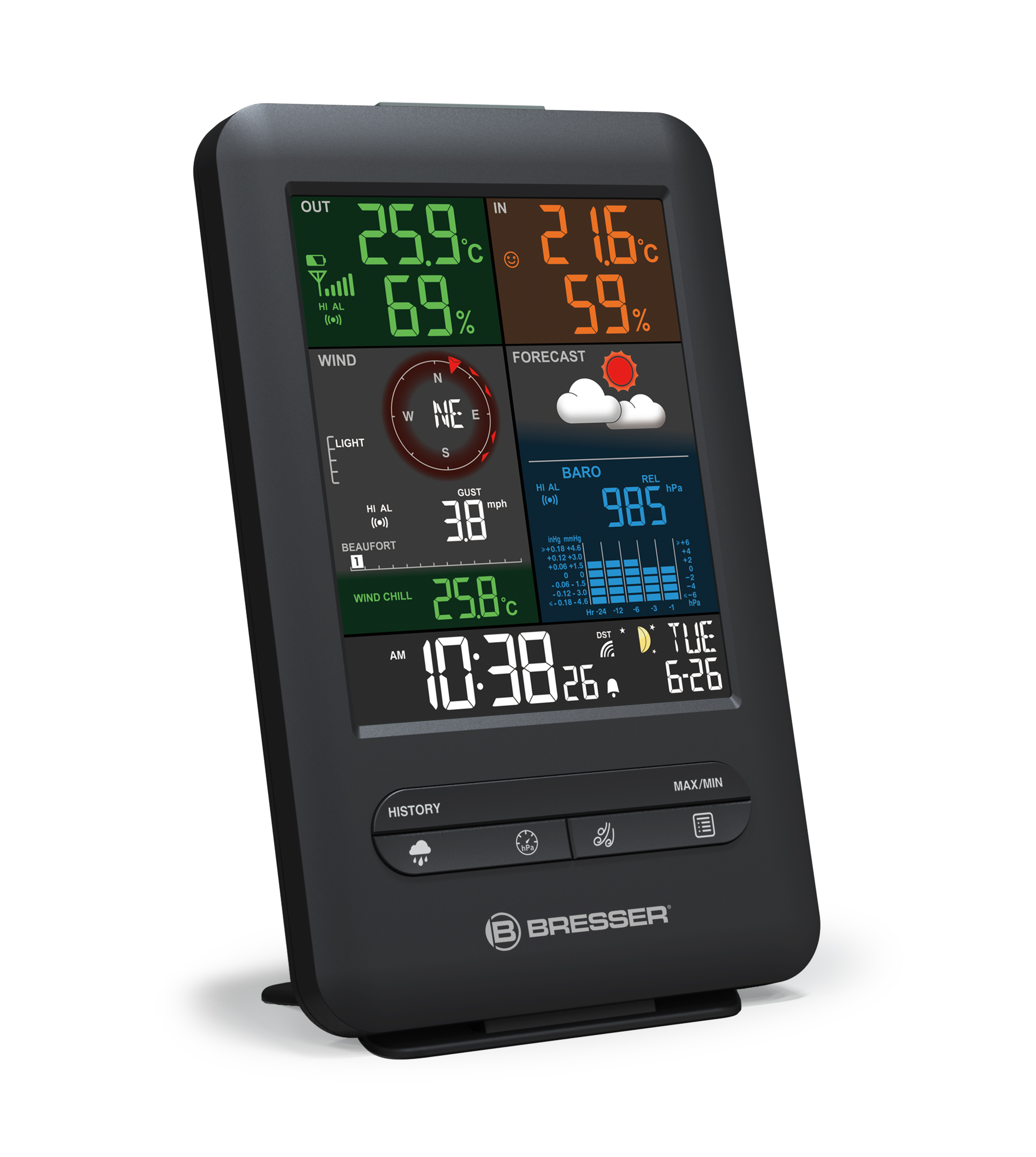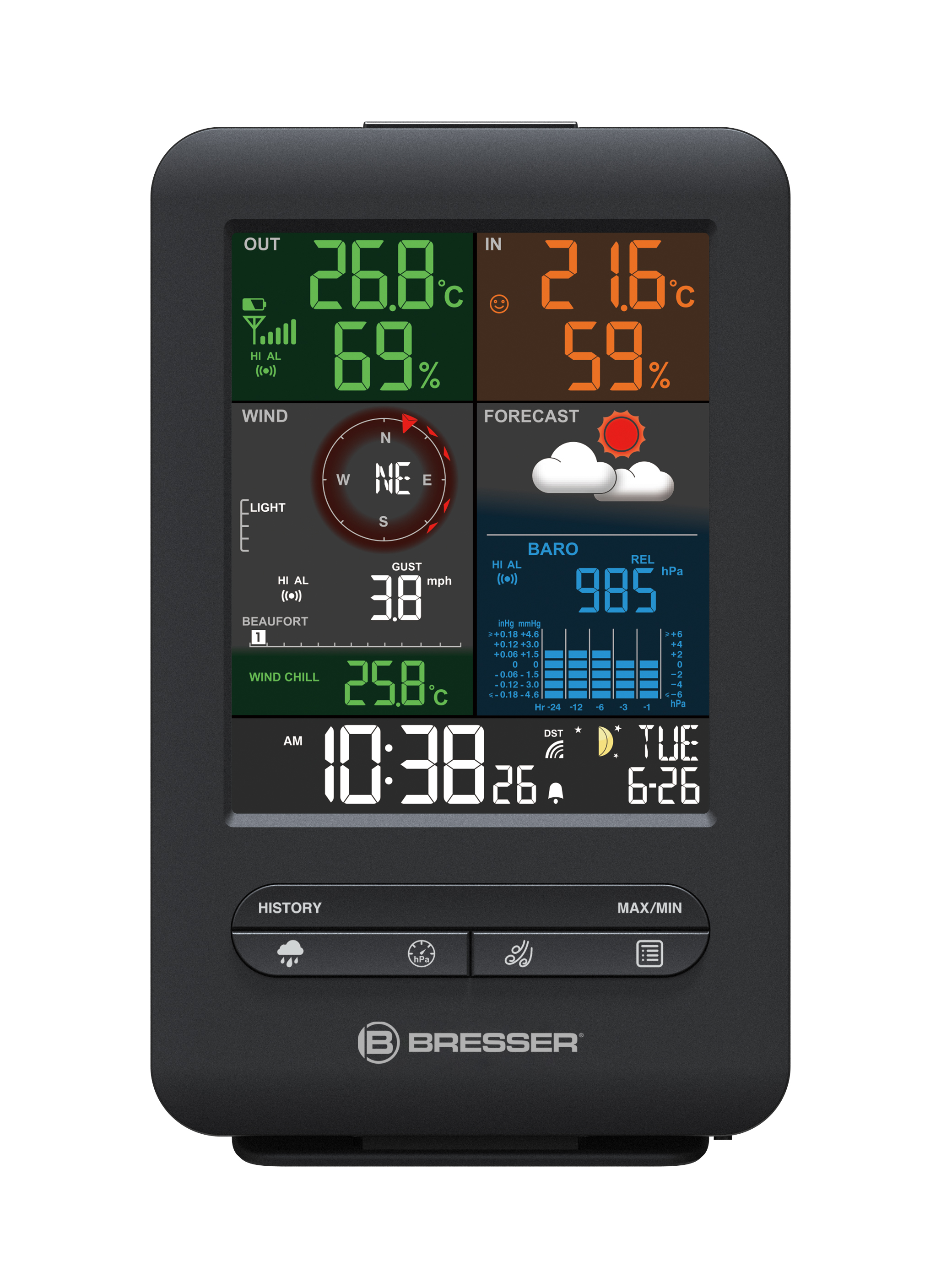 Prečo ďalšia základňová stanica? V obývacej izbe alebo na chodbe si každý člen rodiny rád pozrie údaje z vašej existujúcej meteorologickej stanice BRESSER 5 v 1 Beaufort. Zobrazenie teploty, vlhkosti, tlaku vzduchu, smeru a rýchlosti vetra, množstva zrážok, ako aj grafickej predpovede počasia umožňuje vašim blízkym prežiť život v nepriaznivom počasí. A vďaka hodinám so zobrazením dátumu, dňa v týždni a fáz mesiaca nikto nebude zbytočne strácať čas