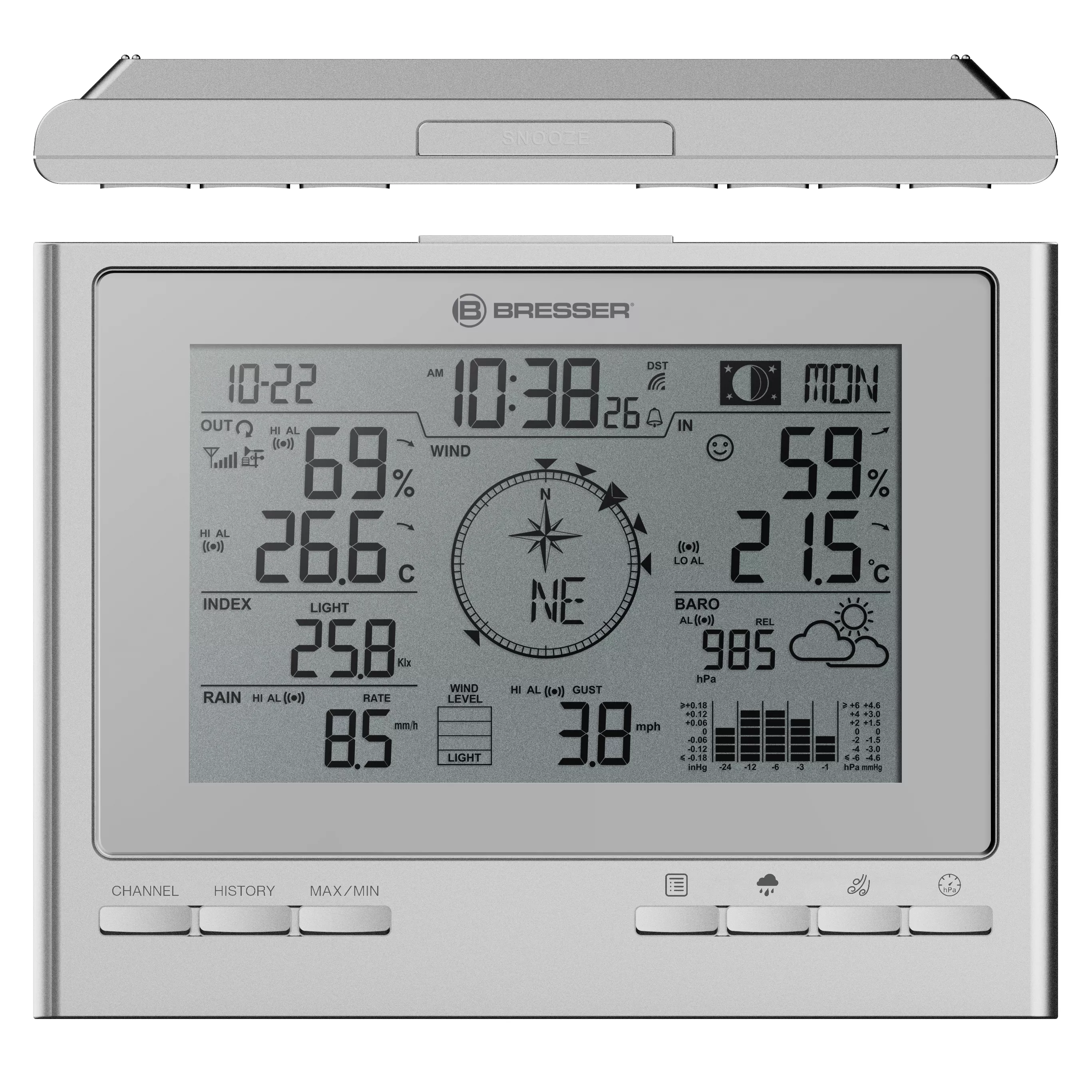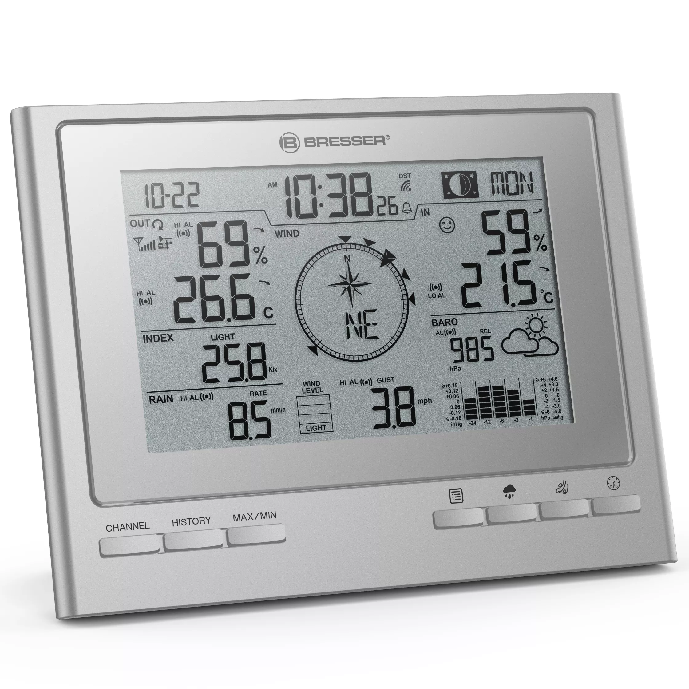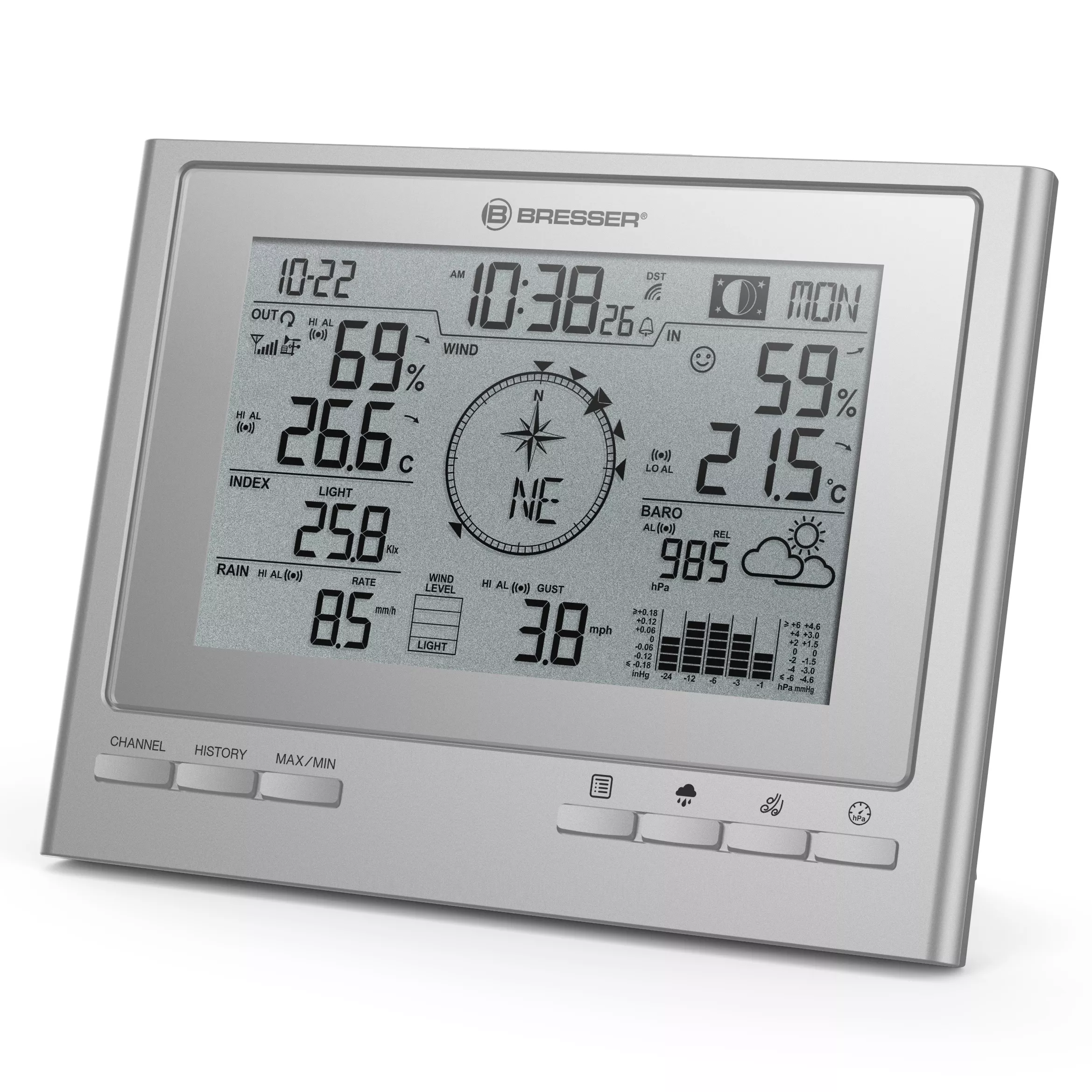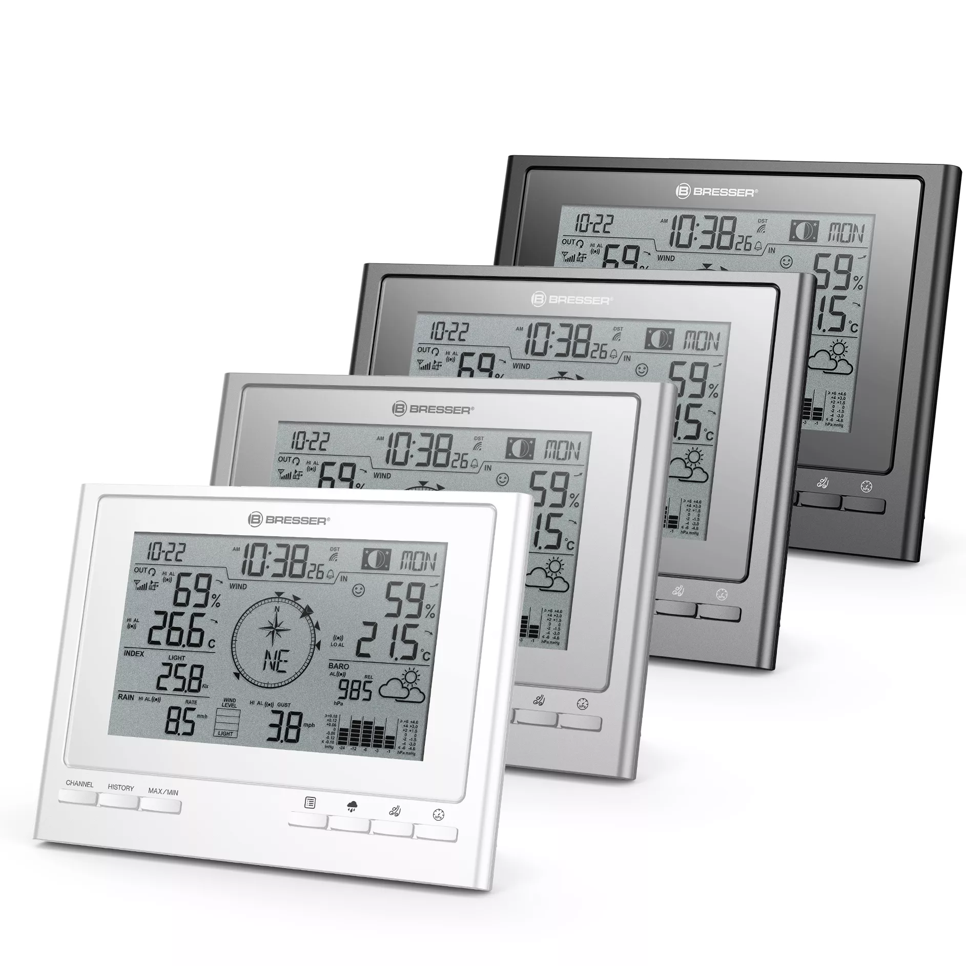 If you have a 7-in-1 ClimateScout Weather Station, this additional base station allows you to access the full range of functions and weather data in an additional room. For example, by placing the additional base station in your bedroom, you can view the measurements from your outdoor sensor and decide what to wear for the day based on the weather conditions. The original base station can then be kept in your living room to give everyone in your household an overview of the outdoor temperature, outdoor humidity, wind speed, wind direction, rainfall, UV and light intensity. With this additional base station, you can see what the weather is doing from both rooms! The base station also has a sleek, elegant design that was designed specially for BRESSER and fits in with all interior styles.