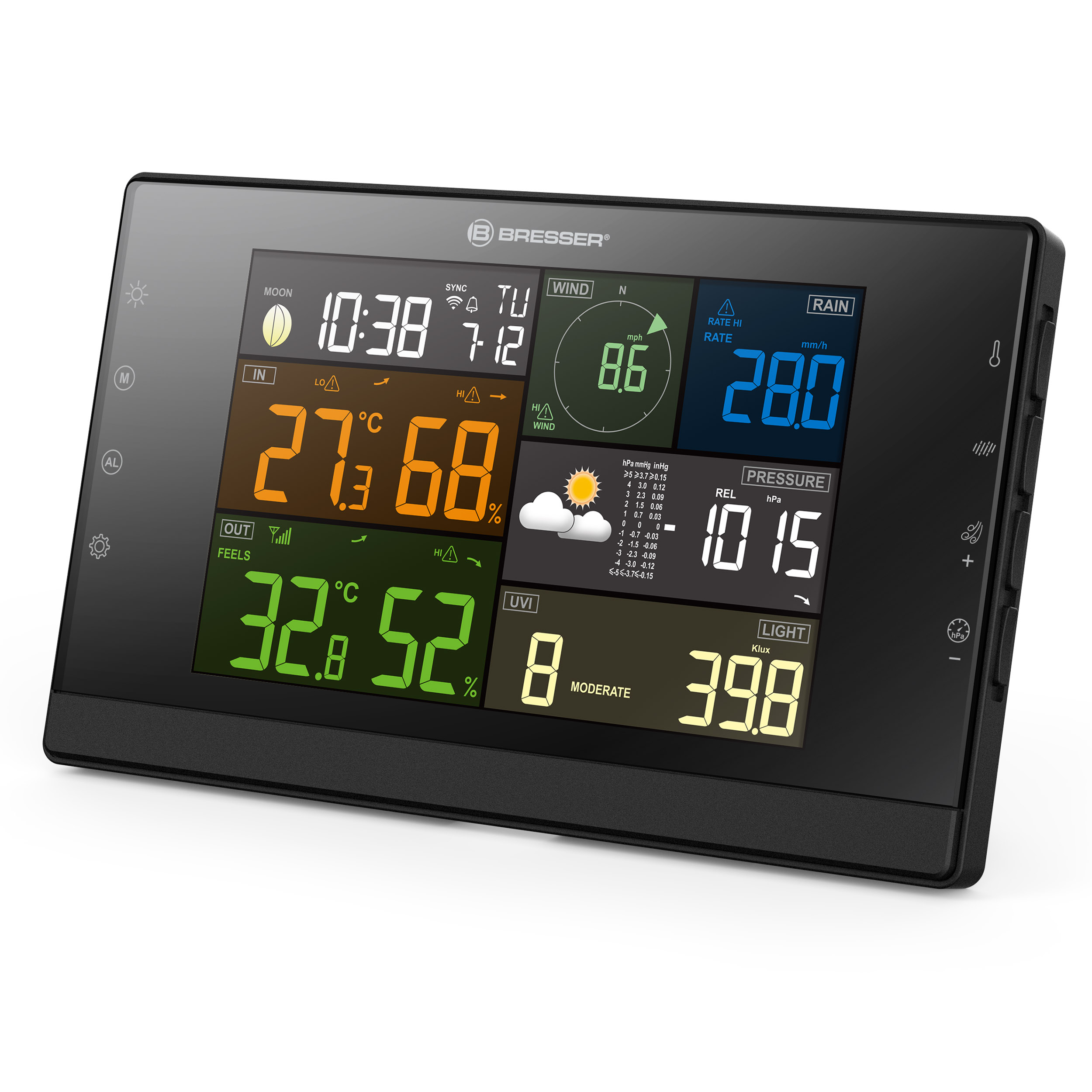 Meteostanica BRESSER Profi-WSC WLAN so snímačom 7 v 1 dokonale zapadne do každého obytného prostredia vďaka svojmu nenápadnému, vkusnému dizajnu a prehľadnému 14,5 cm (5,7") farebnému displeju. Vášniví amatérski meteorológovia môžu čerpať z množstva údajov: bezdrôtový snímač poskytuje všestranné meteorologické informácie s lokálnymi meraniami vonkajšej teploty, vlhkosti, rýchlosti vetra, smeru vetra, intenzity dažďa, úrovne UV žiarenia a intenzity svetla. Praktický a ekologický: Vonkajší snímač je vybavený solárnym panelom, ktorý zabezpečuje dlhšiu výdrž batérií.
