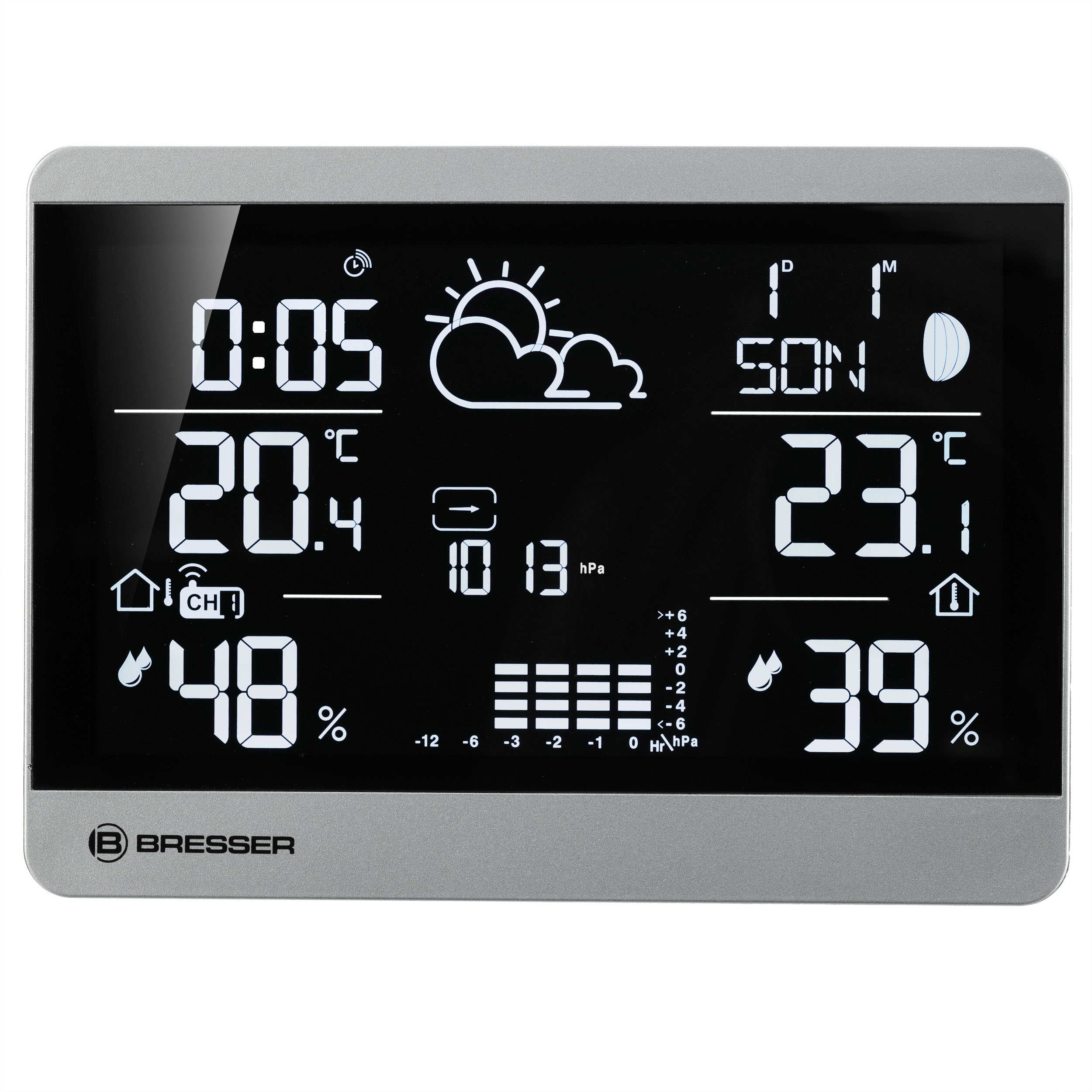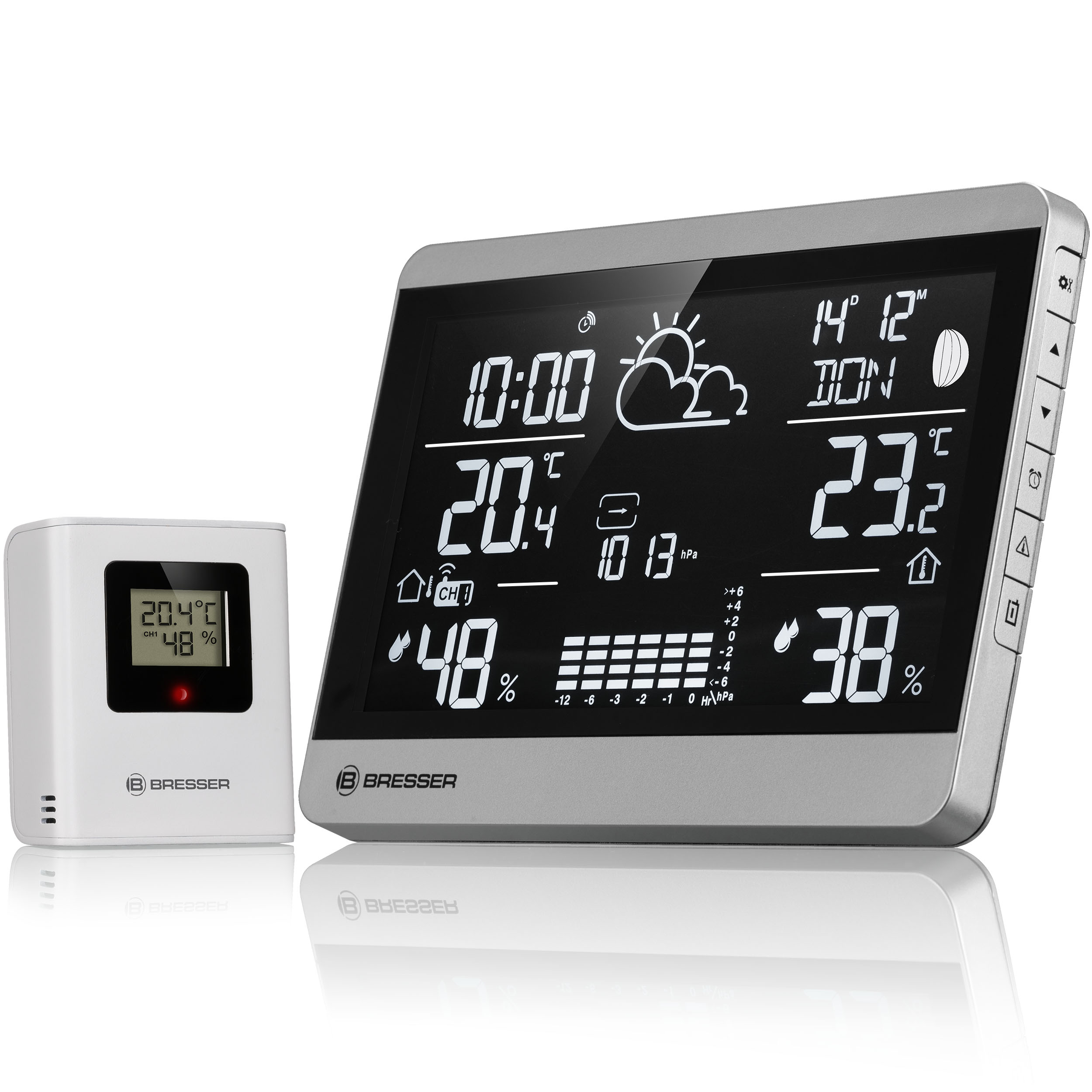 Bezdrôtová meteorologická stanica BRESSER zaujme aj praktickými funkciami. Napríklad upozornenie na ľad vás informuje o mrazivých teplotách počas chladných dní. Vďaka pamäti max/min hodnôt môžete sledovať vývoj teploty a vlhkosti. A alarm vysokej/nízkej teploty vás upozorní na dosiahnutie vlastných hodnôt teploty - ideálne na rýchlu reakciu na zmeny počasia.