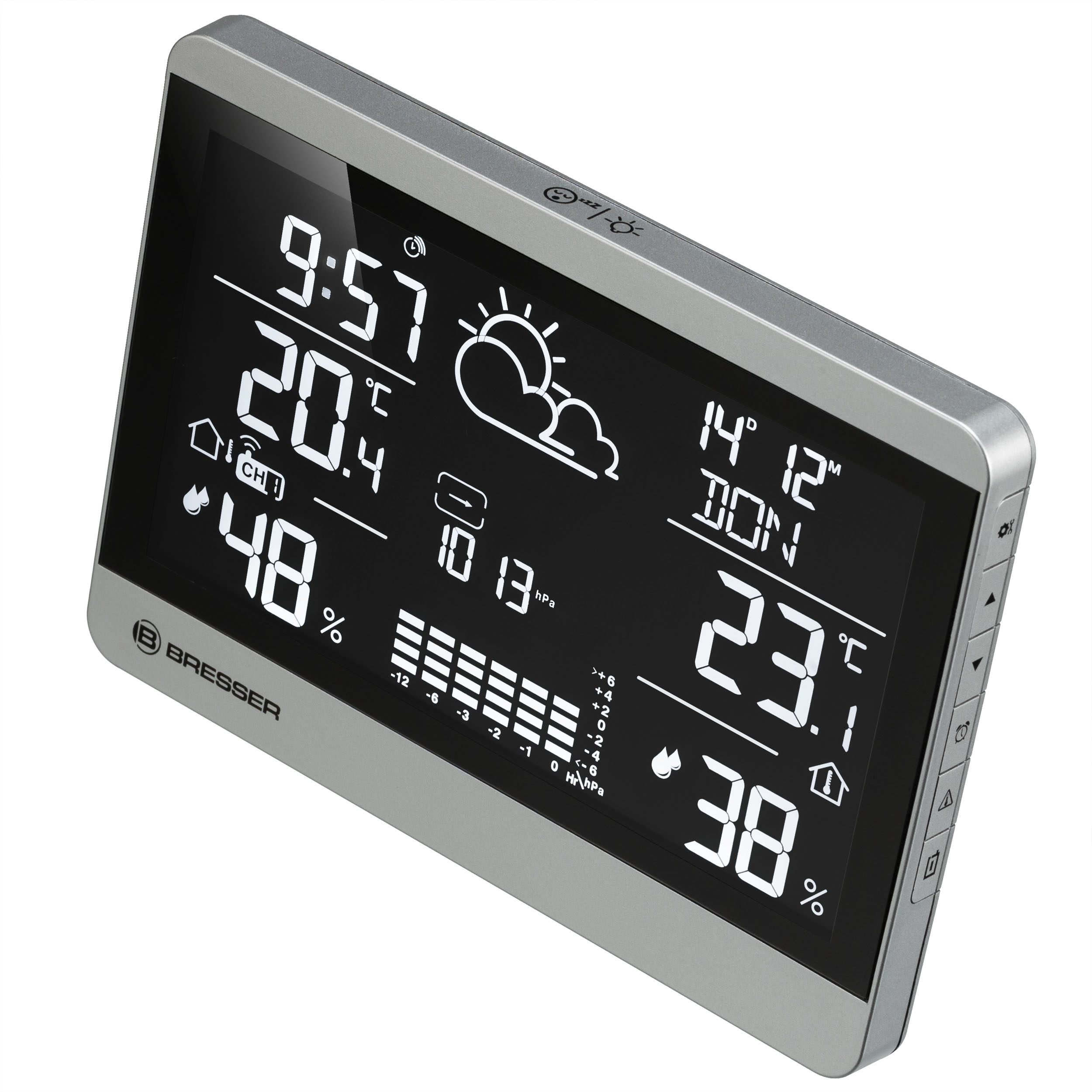 Okrem počasia potrebujeme aj správnu vnútornú klímu, aby sme sa cítili príjemne. Preto bezdrôtová meteostanica BRESSER meria nielen vonkajšiu teplotu a vlhkosť, ale aj hodnoty vo vnútri domu. Vďaka tomu môžete optimálne regulovať vnútornú klímu a zabezpečiť príjemnú atmosféru vo vašej domácnosti, ale aj v kancelárii a podobne. Ideálne na prispôsobenie vykurovacích a vetracích návykov.