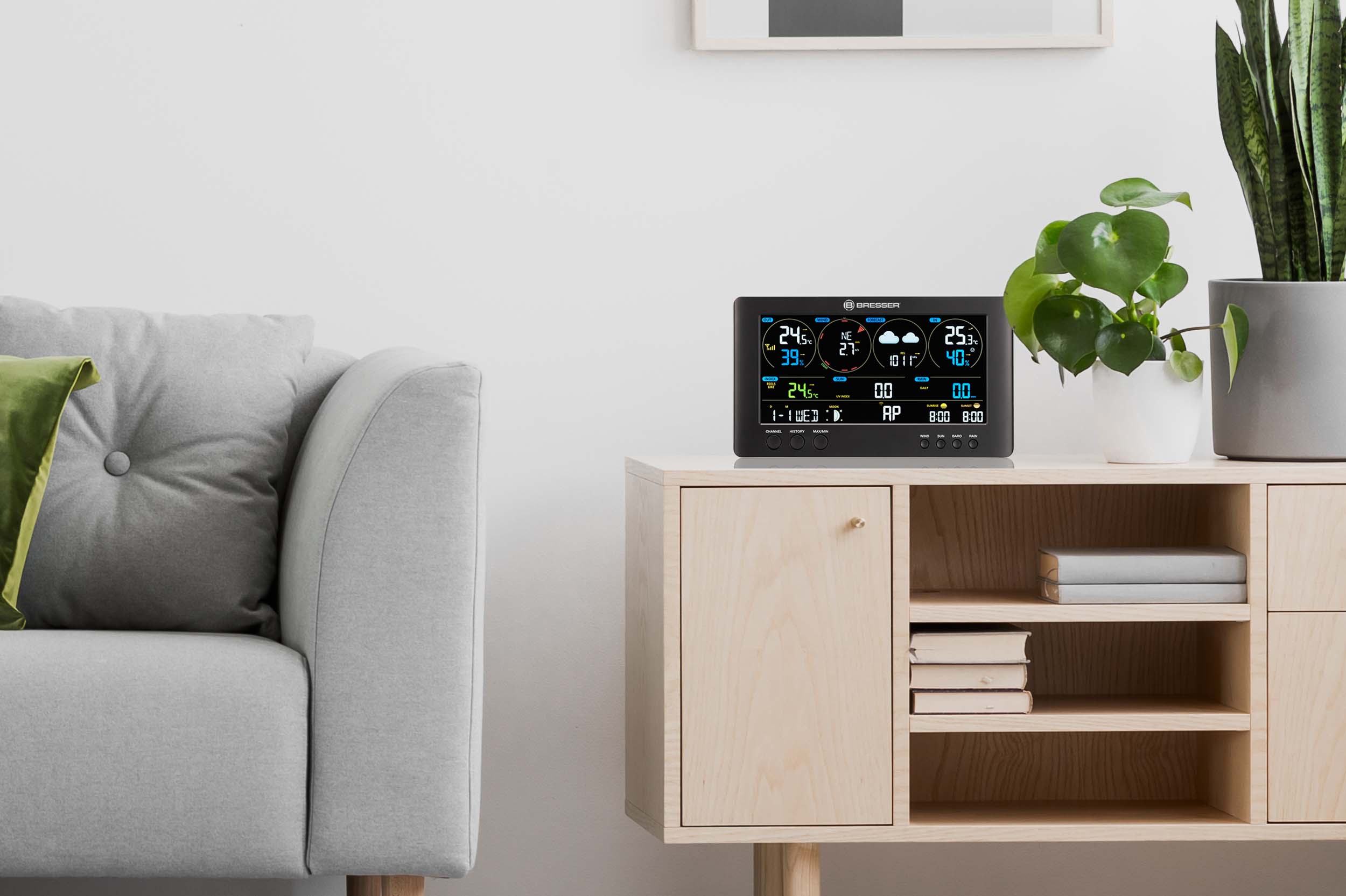 Zlá vnútorná klíma často skrýva zdravotné riziká, najmä pre deti a starších ľudí. Farebná meteostanica BRESSER WLAN ponúka aj v tomto prípade inteligentnú funkciu. Indikátor vnútornej klímy pomocou symbolu poskytuje neustále informácie o vnútornej klíme.