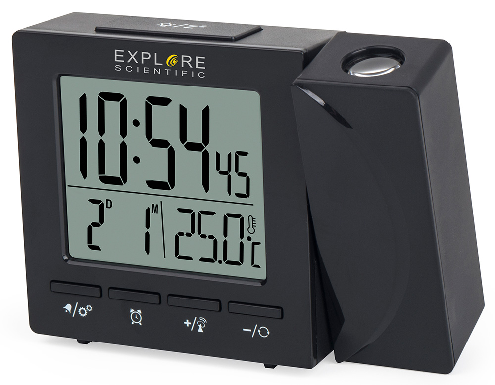 Explore Scientific RC Digital Projection Clock with Indoor Temperature, black