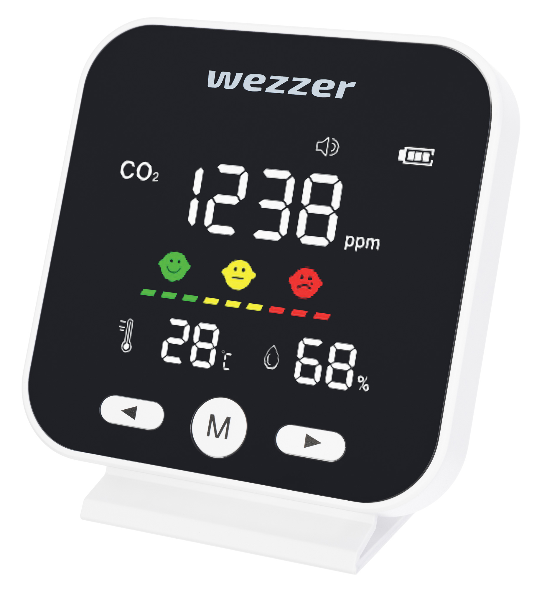 - Upozorní vás, když hodnoty CO₂ překročí komfortní úroveň