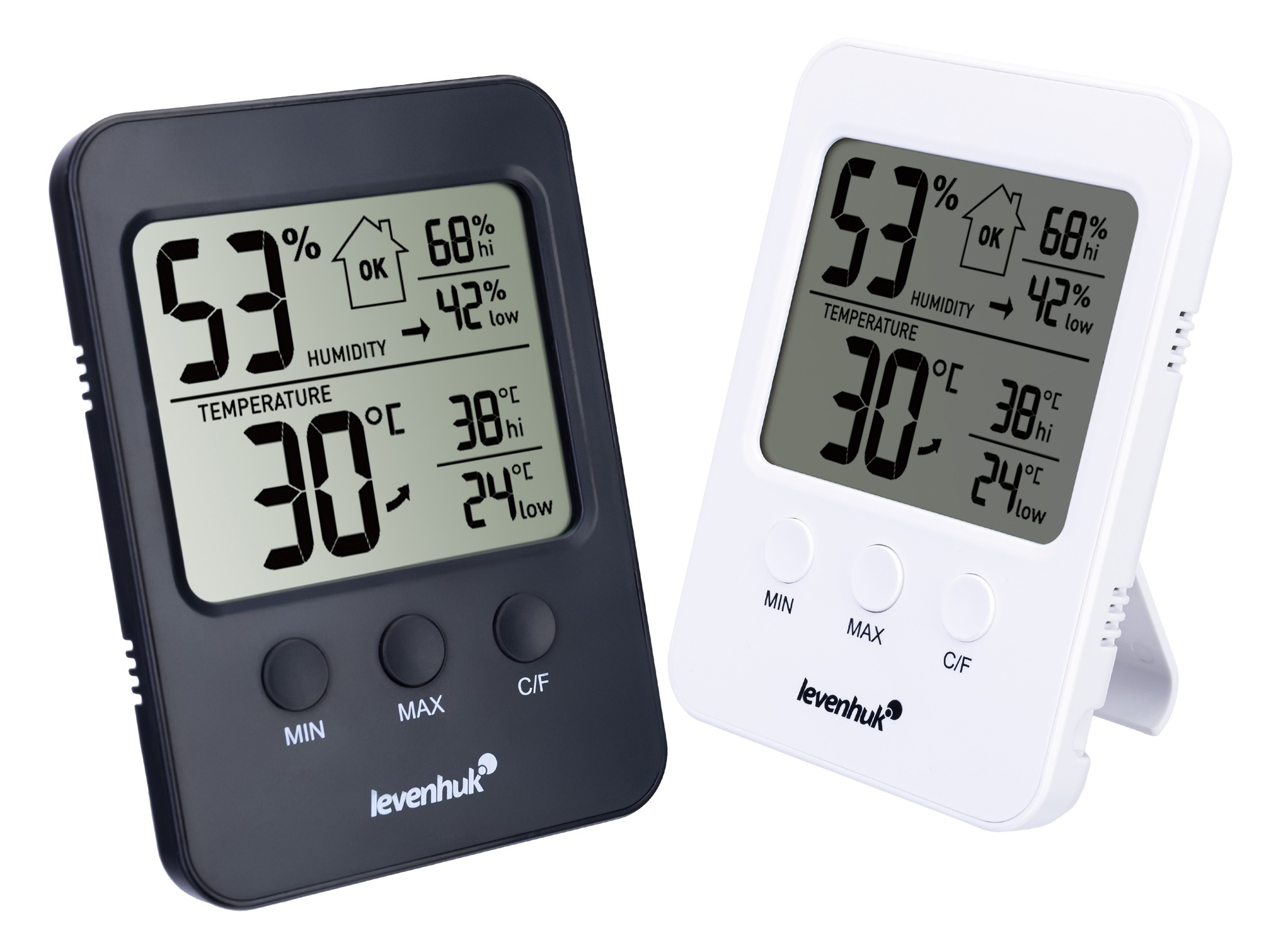 Termohygrometr Levenhuk Wezzer BASE L30 je praktické digitálne zariadenie, ktoré sa stane užitočným nástrojom pre každú domácnosť. Meria nielen teplotu v miestnosti a vlhkosť vzduchu v miestnosti, ale tiež ukazuje trendy v zmenách meteorologických parametrov. Vďaka takémuto prístroju budete mať vždy prehľad o základných parametroch mikroklimatu a budete môcť ľahko sledovať jeho zmeny. To vám pomôže zabrániť tvorbe plesní v dôsledku vysokiej vlhkosti alebo naopak príliš suchému vzduchu.