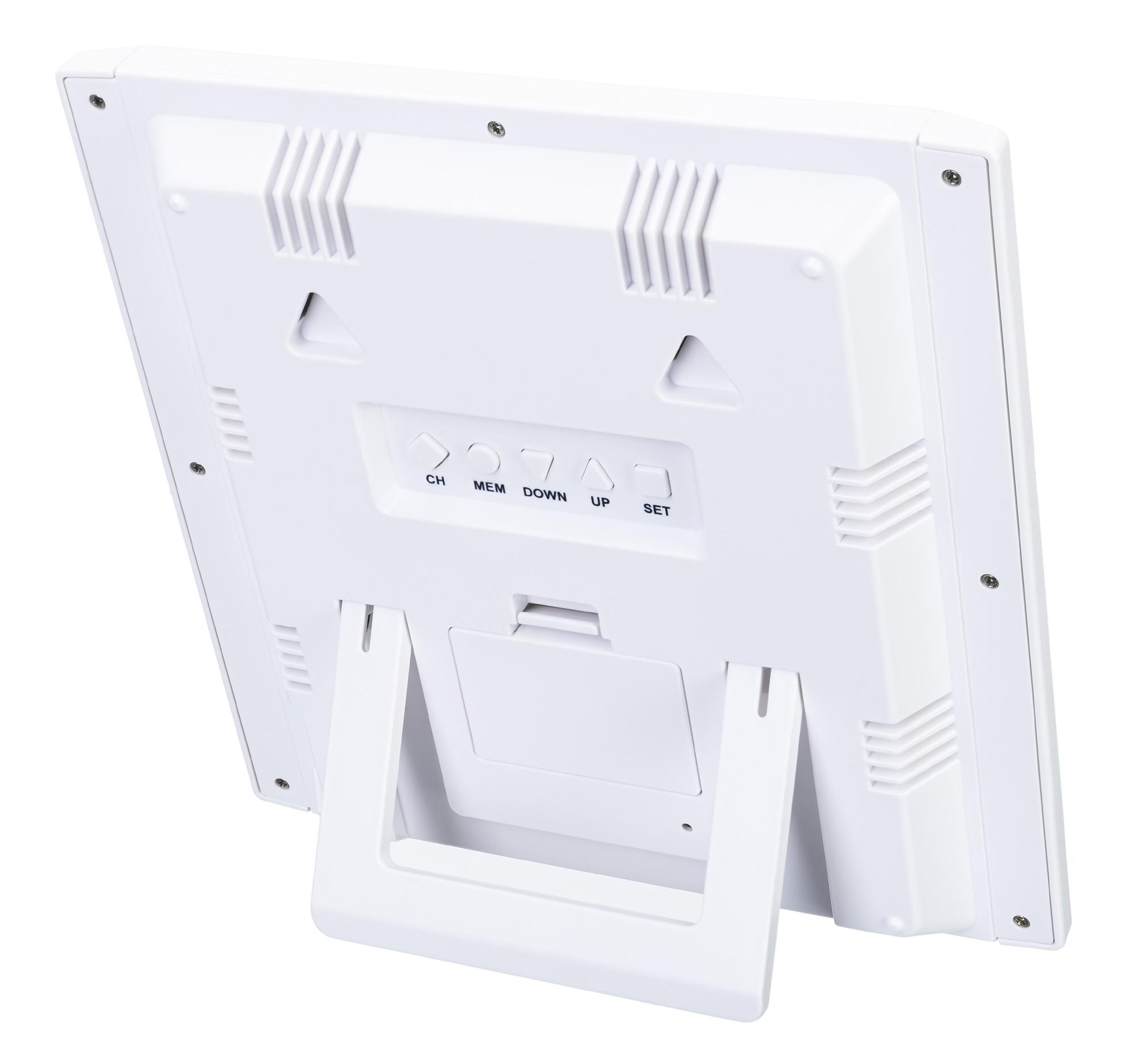 Ovládacie tlačidlá sú umiestnené na zadnej strane, takže prístroj Levenhuk Wezzer PLUS LP30 vyzerá štýlovo a minimalisticky. Základová stanica je vybavená výklopným stolovým stojanom, senzor má otvor na montáž na stenu.