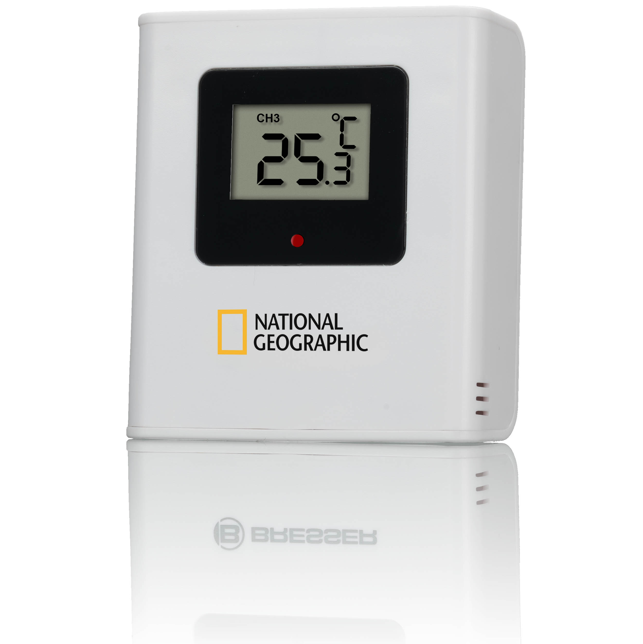 Bezdrôtová meteostanica NATIONAL GEOGRAPHIC Transparent kombinuje veľké číslice na futuristickom priehľadnom displeji s jednoduchým a elegantným podstavcom. Ovládacie prvky boli umiestnené na zadnej strane, aby sa minimalizoval vplyv na dizajn. Vďaka priehľadnému displeju sú stále dobre čitateľné. Okrem veľkého času rádiovo riadených hodín sa na displeji vedľa seba zobrazuje aj vonkajšia a vnútorná teplota a relatívna vlhkosť . Skutočný pútač pozornosti na každom pracovnom stole. Meteostanicu možno používať aj ako budík a je vybavená funkciou odloženia budenia.