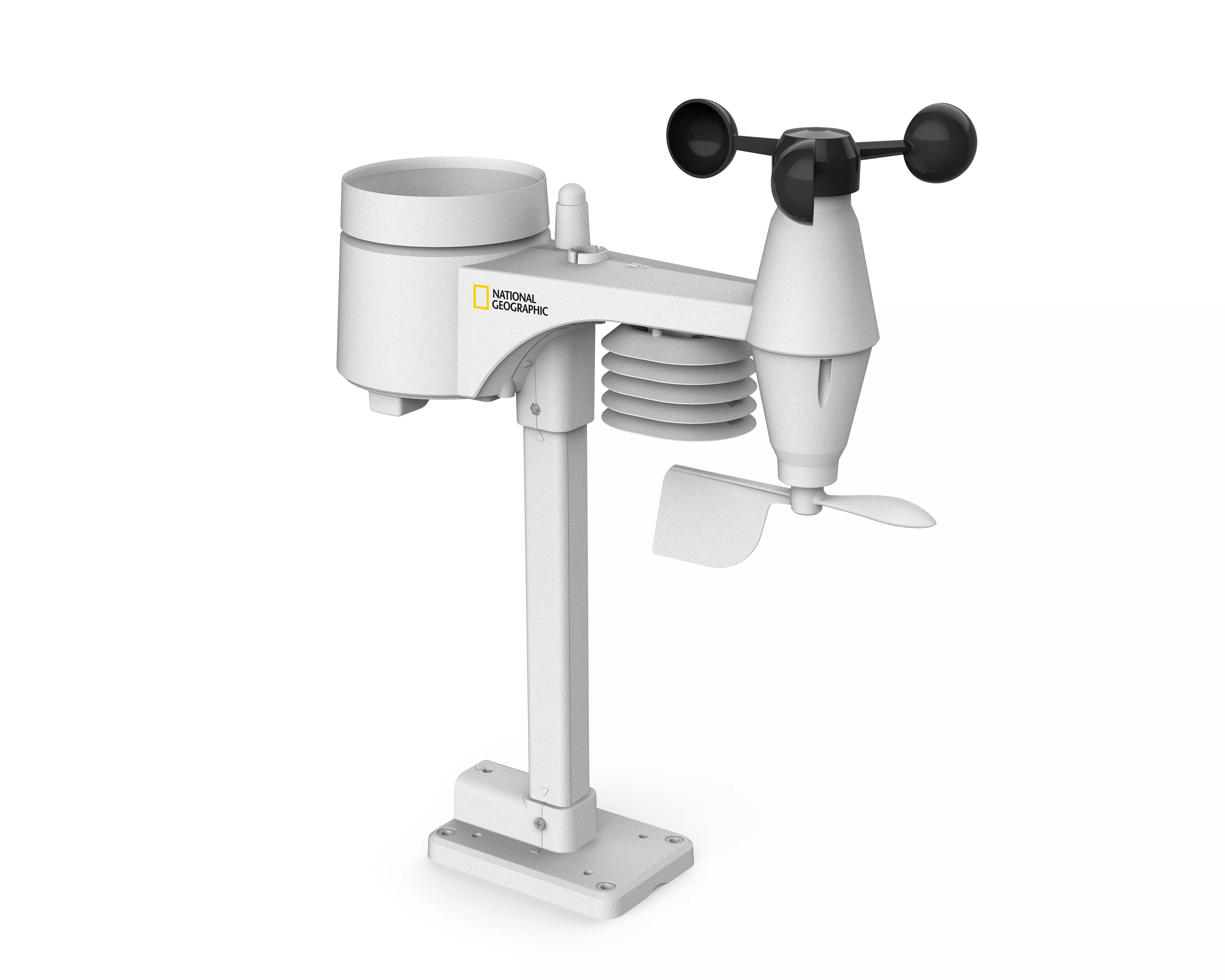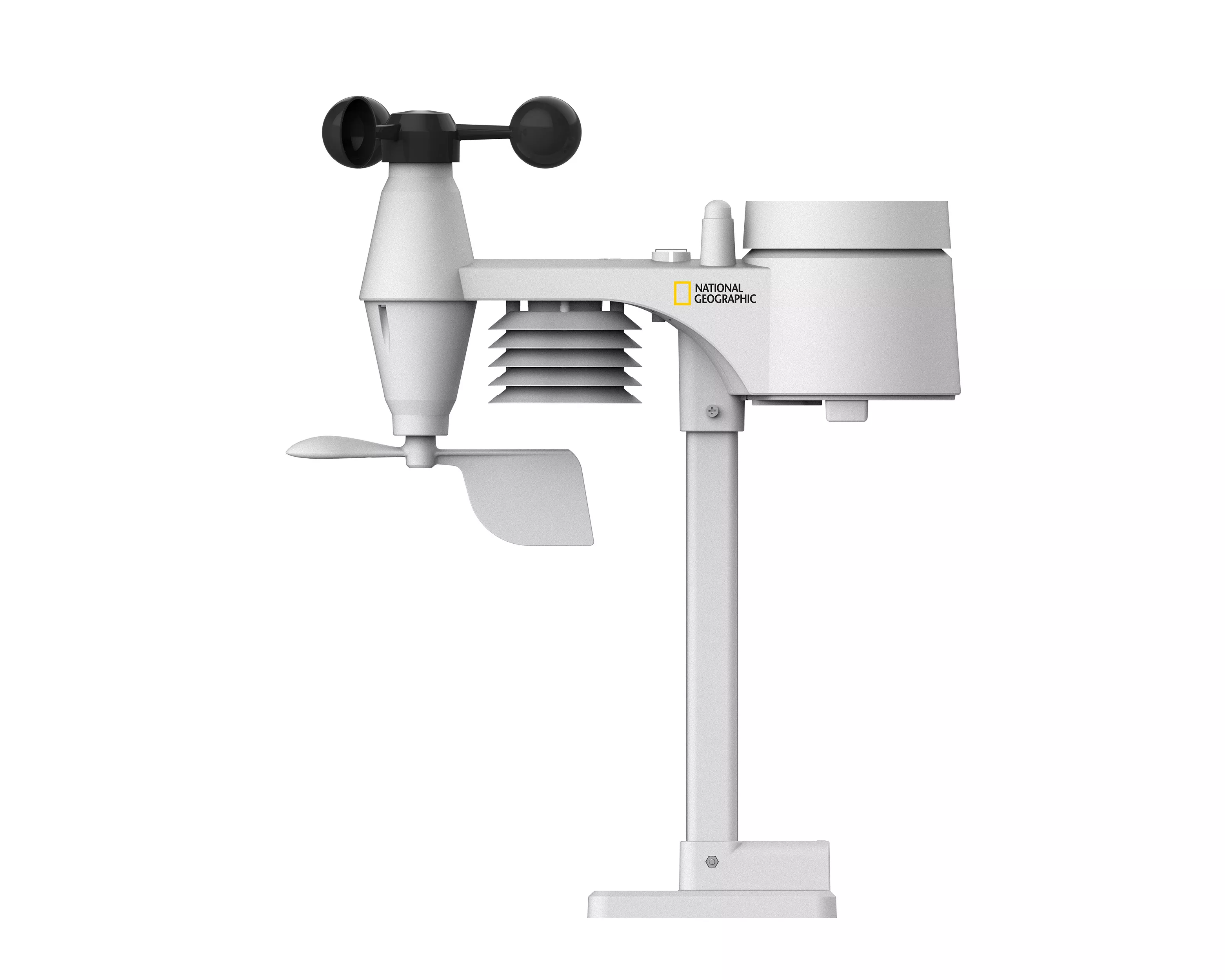 Vonkajší senzor 5 v 1 spoľahlivo prenáša namerané hodnoty rýchlosti vetra, smeru vetra, vlhkosti, teploty a množstva zrážok do základňovej stanice. Na displeji základňovej stanice možno odčítať nielen tieto hodnoty, ale aj rôzne historické údaje. Tá umožňuje interné ukladanie a vyhodnocovanie nameraných údajov za obdobie 24 hodín. Zo zozbieraných nameraných údajov meteorologická stanica vypočíta veľmi spoľahlivú predpoveď miestneho vývoja počasia na nasledujúcich 12 hodín, ktorá sa na displeji zobrazuje pomocou šiestich grafických symbolov. Pre maximálne a minimálne hodnoty možno individuálne naprogramovať alarm, ktorý po dosiahnutí určenej hodnoty spustí akustický aj svetelný signál. Pri vonkajších teplotách od -3 °C možno aktivovať aj špeciálny výstražný alarm proti mrazu/ľadu. Zlá vnútorná klíma môže predstavovať zdravotné riziko, najmä pre deti a staršie osoby. Meteostanica National Geographic Weather Station na tento účel ponúka aj inteligentnú funkciu. Indikátor klímy v miestnosti vždy informuje o klíme v miestnosti pomocou symbolu.