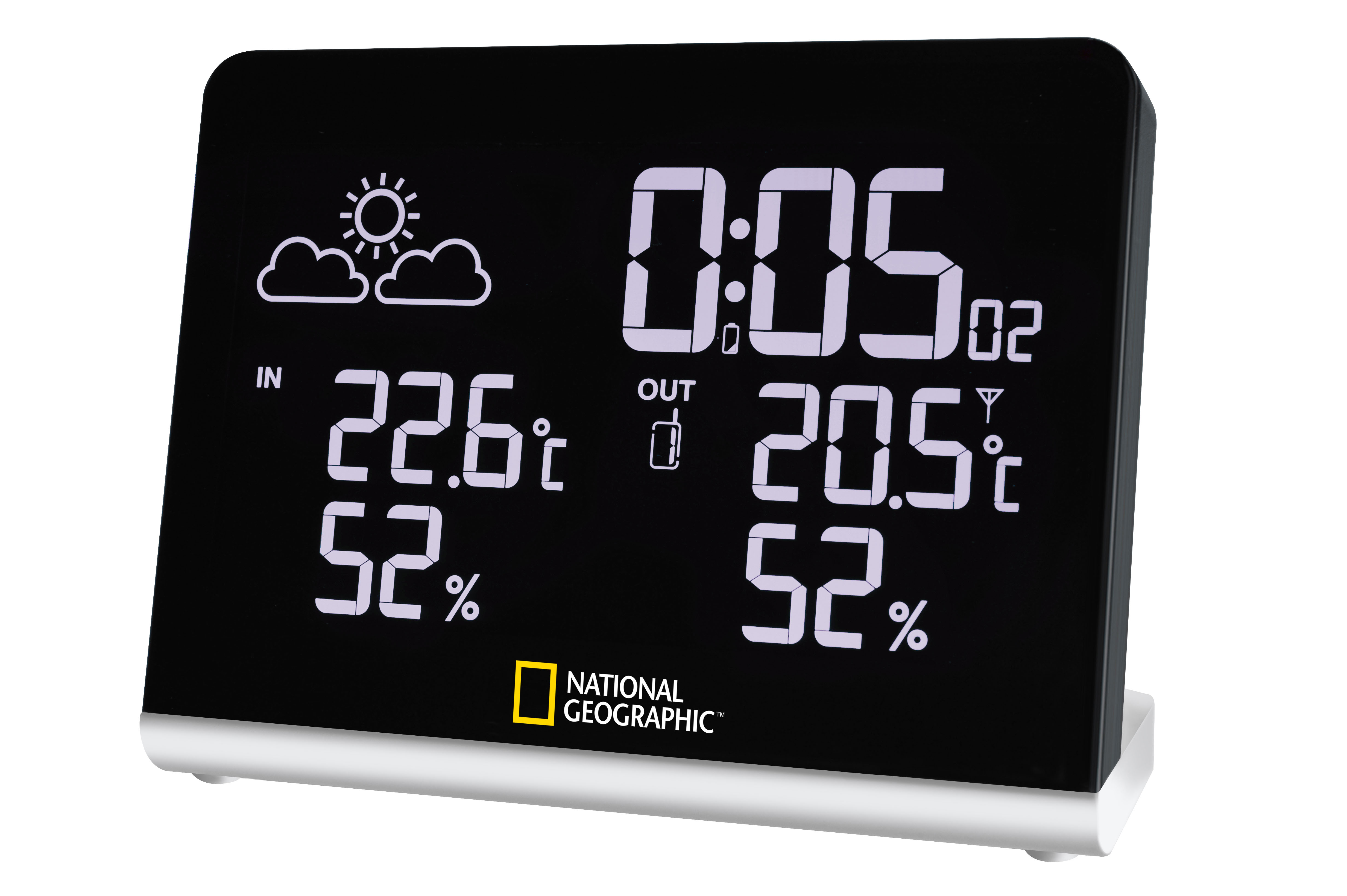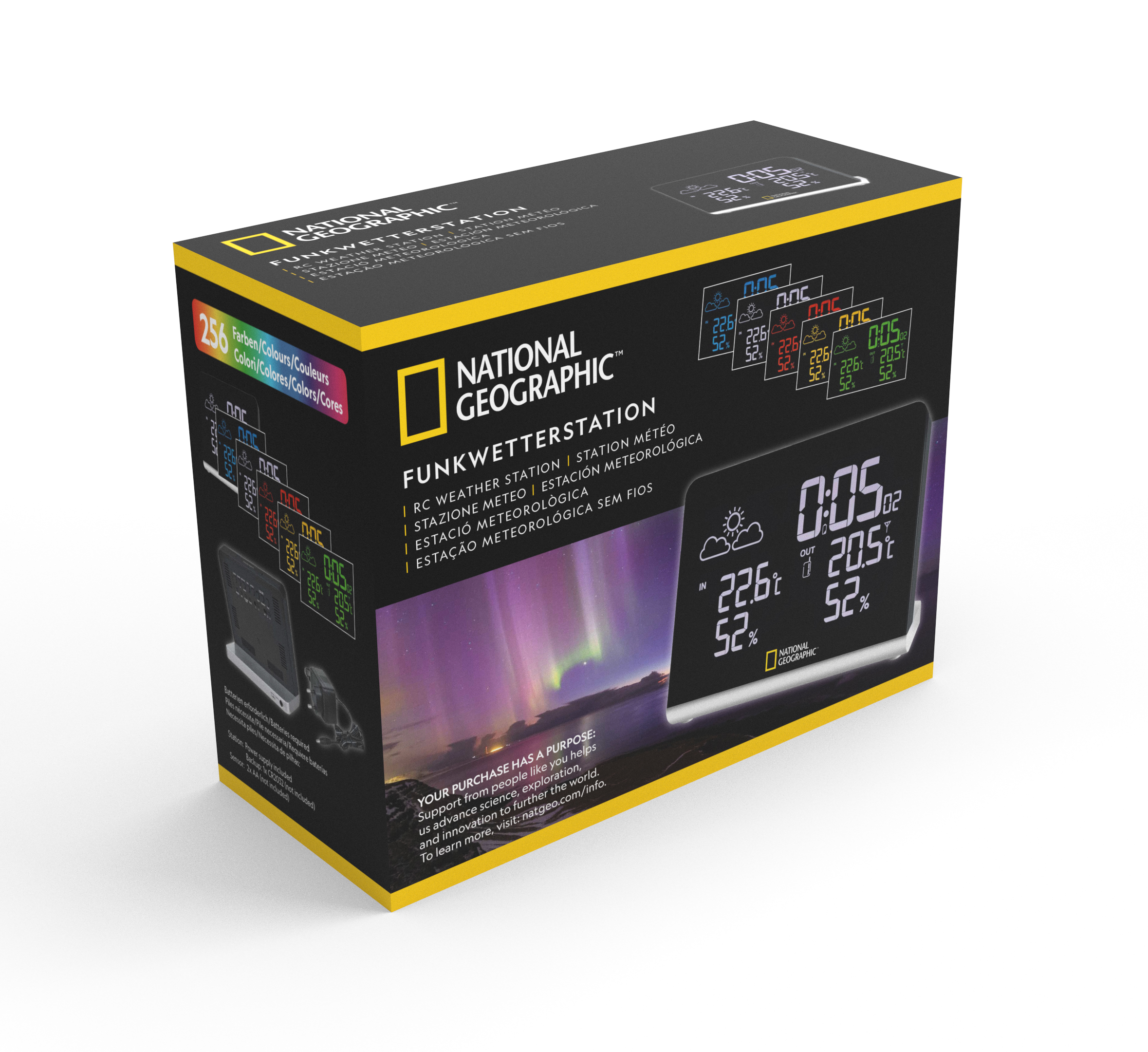 Bezdrôtová meteostanica NATIONAL GEOGRAPHIC Multi Colour zaženie každodennú šeď vďaka farebnému displeju, ktorý môže automaticky prepínať medzi 256 farbami alebo si ho môžete individuálne vybrať z bielej, červenej, oranžovej, žltej, zelenej, svetlomodrej, tmavomodrej alebo fialovej. Pravé čierne pozadie s hlbokou, sýto čiernou farbou zvyšuje kontrast displeja a naplno zvýrazňuje farby