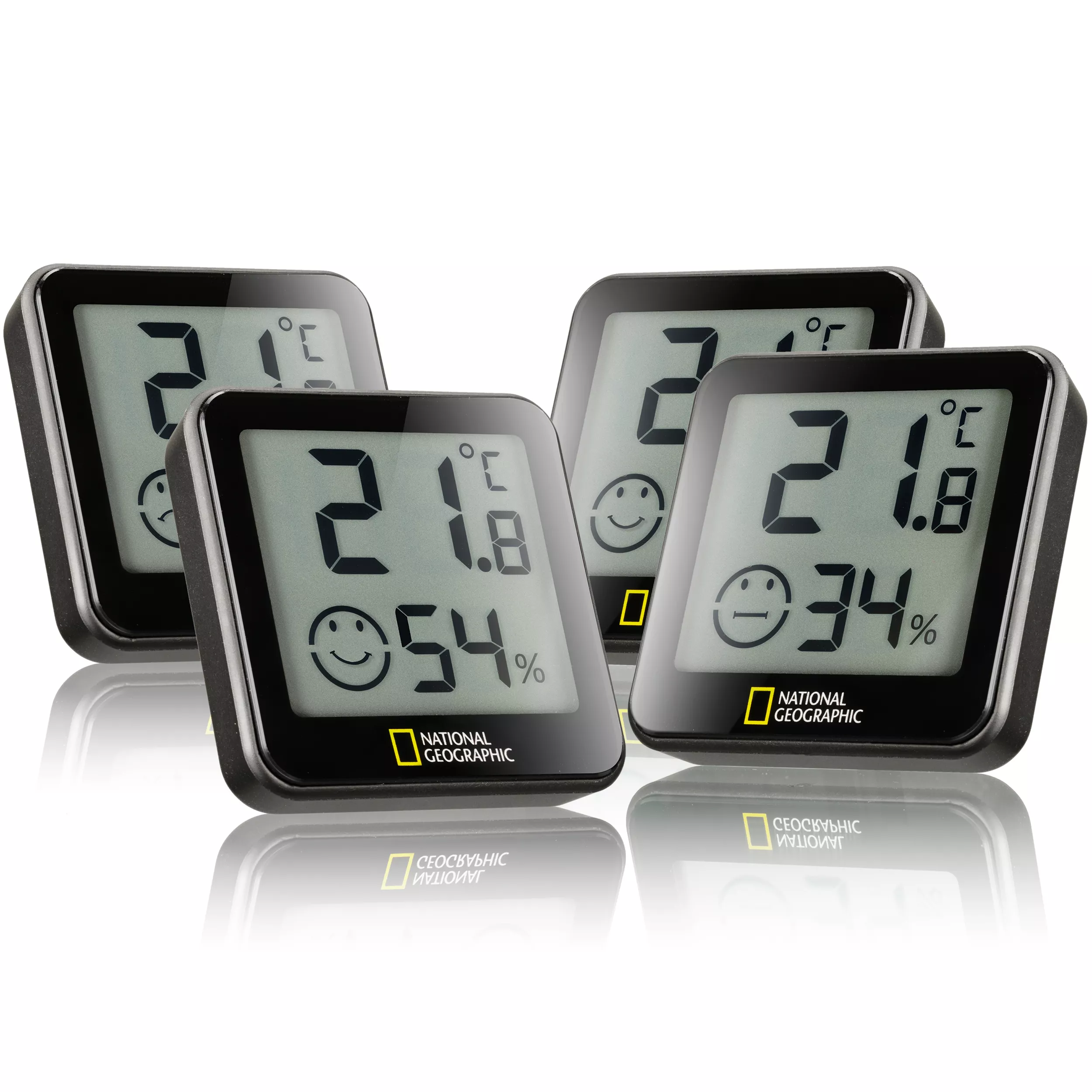 Táto sada 4 kompaktných snímačov NATIONAL GEOGRAPHIC Tempy Thermo/Hygrometer je ideálna na monitorovanie teploty a vlhkosti v rôznych miestnostiach a udržiavanie zdravej vnútornej klímy.