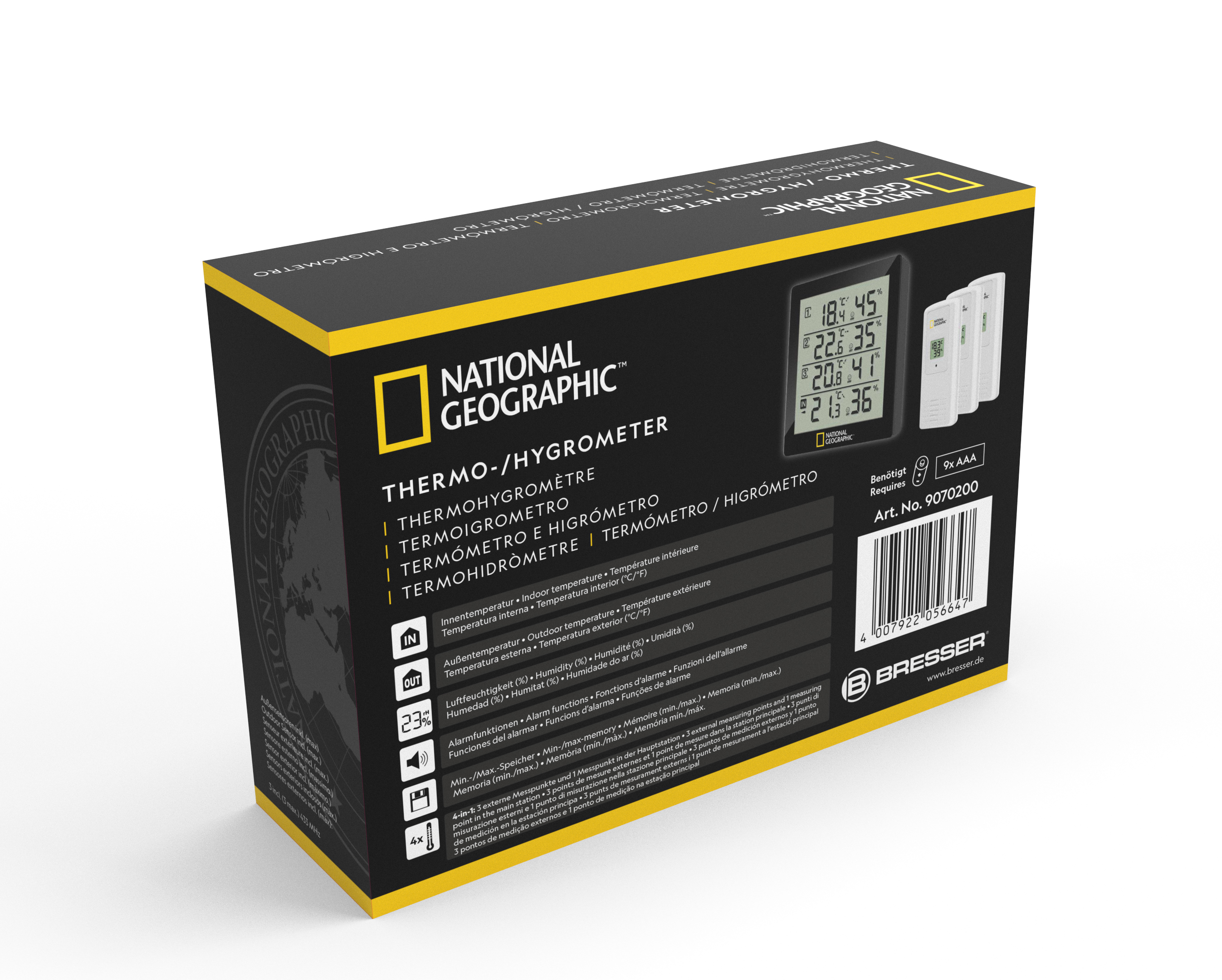 Digitálny termo-hygrometer NATIONAL GEOGRAPHIC pre 4 zóny – čierny
