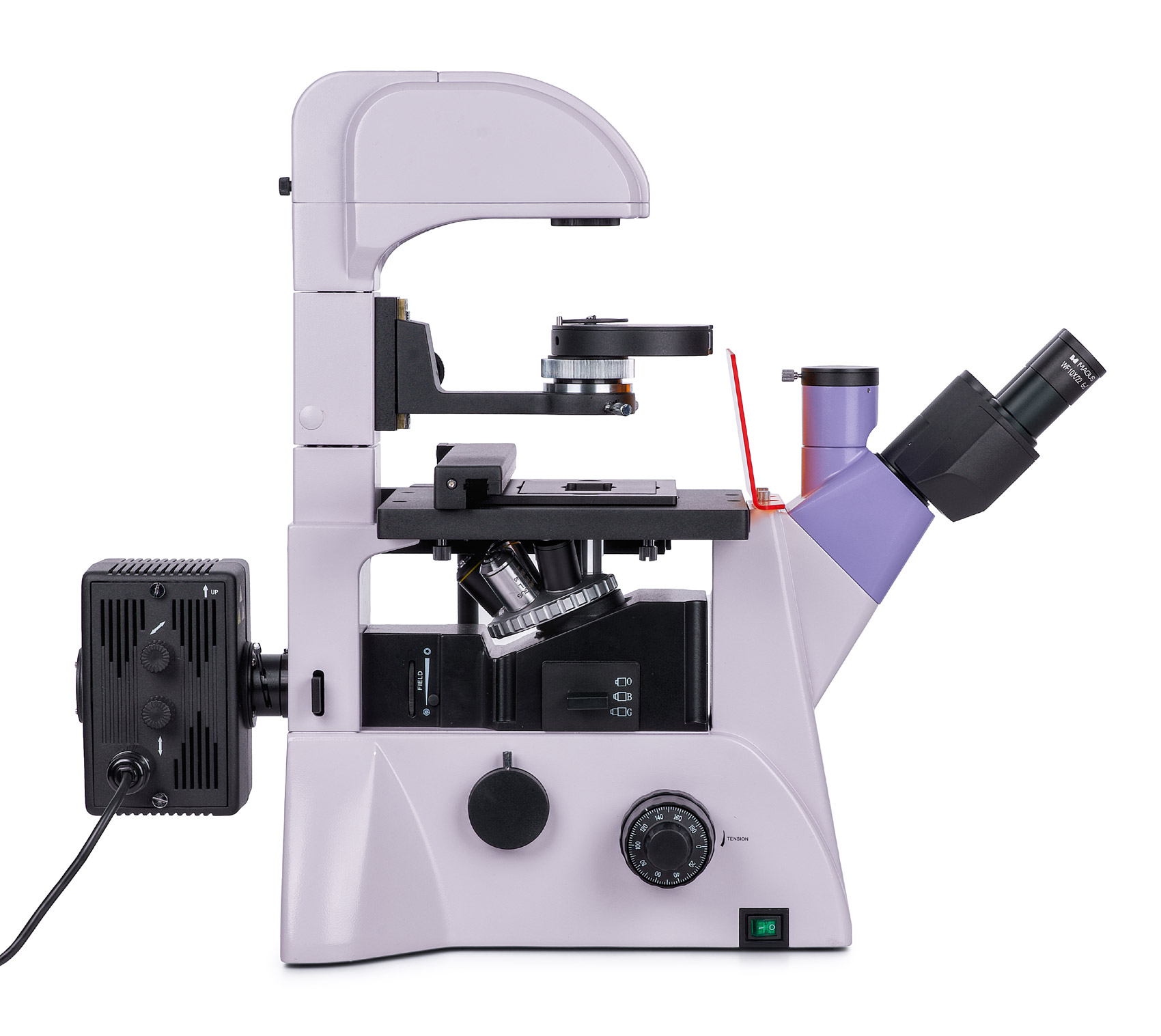 Mikroskop je vybavený trinokulárnou hlavou s trinokulárnym tubusom a bočným portom pre kameru. Konštrukcia umožňuje súčasné pripojenie digitálnej kamery aj monitora. Rozdelenie svetelného lúča je možné nastaviť v pomere 100/0 alebo 50/50 na hlavici a 100/0 alebo 0/100 na tele mikroskopu. Okulárové tubusy sú otočné o 180°, čo umožňuje nastavenie podľa individuálnych potrieb používateľa.