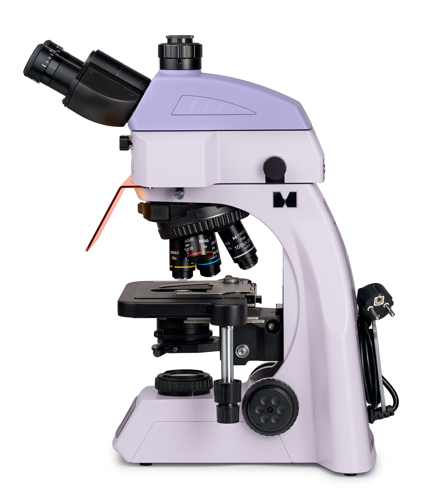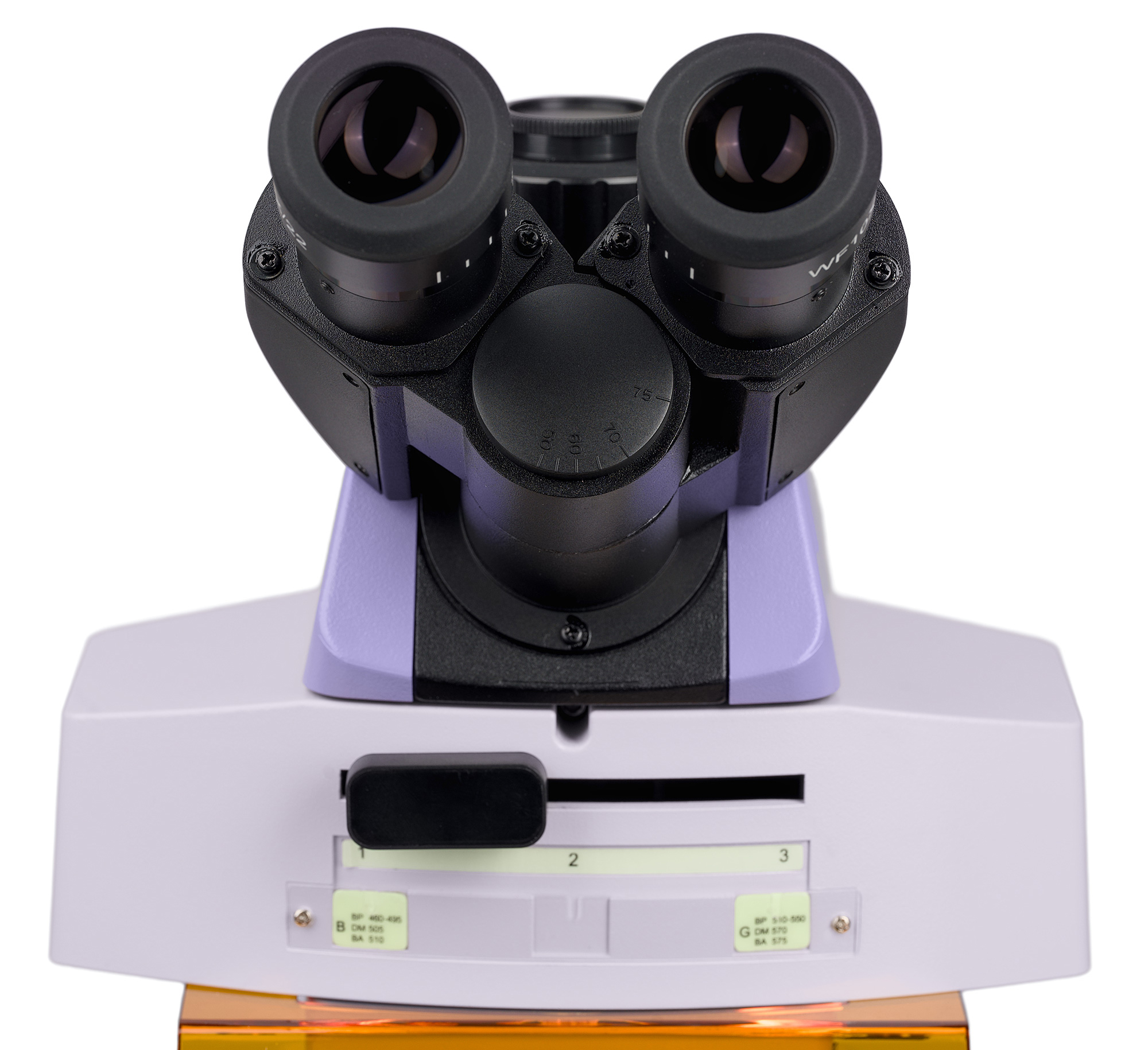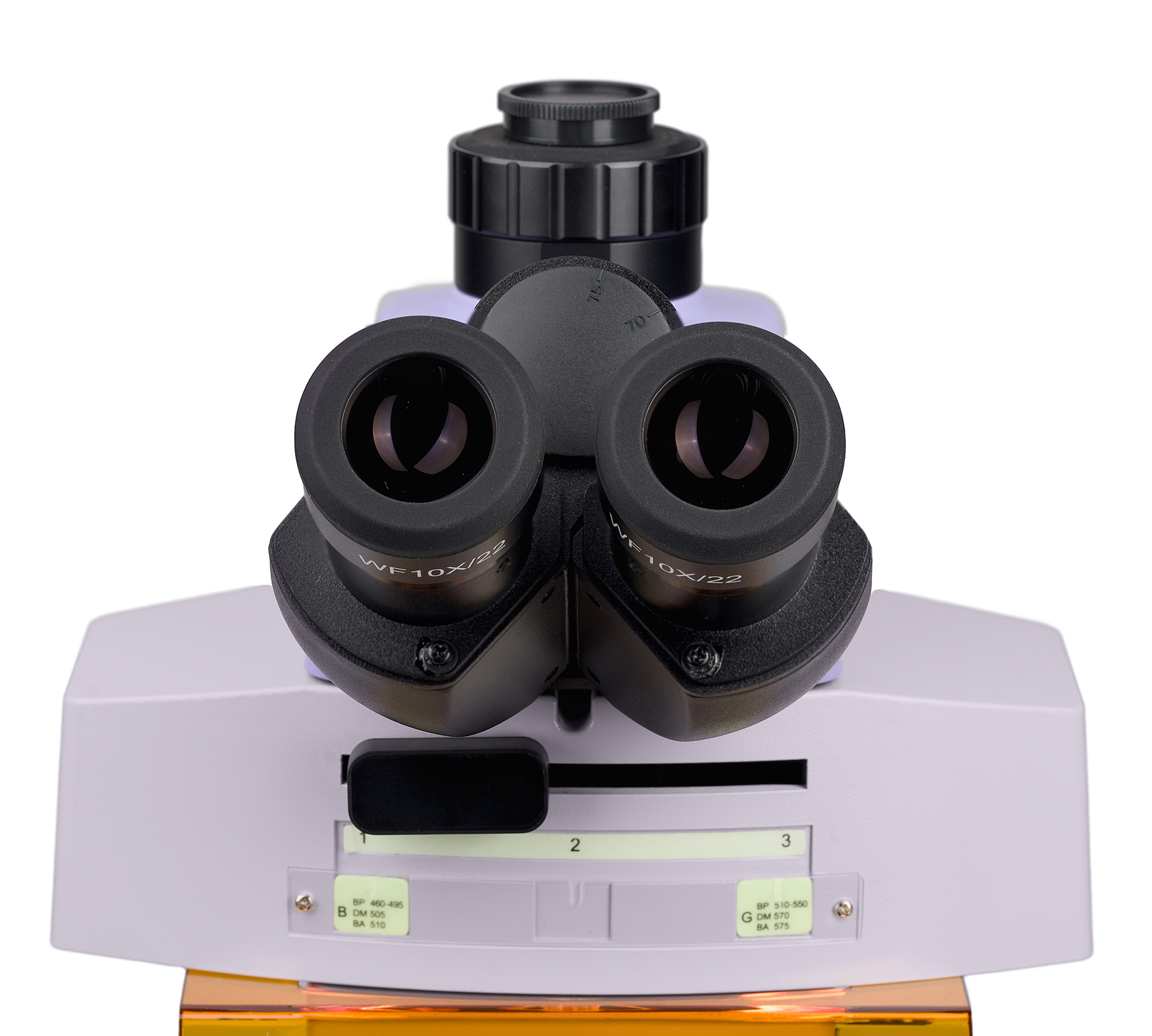 Mikroskop je vybavený trinokulárnou hlavou s dvoma okulárovými tubusmi a tretím tubusom pre digitálnu kameru. Okulárové tubusy sú určené pre optiku s korekciou na nekonečno a dajú sa otáčať o 360°, takže si používateľ jednoducho nastaví pohodlnú pozorovaciu polohu podľa svojej výšky. Pri pripojení kamery sa svetelný lúč rozdeľuje v pomere 50:50.
