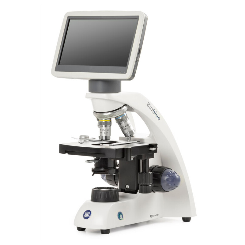 Moderné mikroskopy radu BioBlue boli špeciálne vyvinuté pre vzdelávanie a školy s dôrazom na ergonómiu v súlade s dnešnými normami kvality. Okuláre sú špeciálne zabezpečené na vyučovanie a mikroskop je vybavený integrovaným systémom blokovania stolíka, ktorý zabraňuje poškodeniu objektívov alebo vzoriek. Okuláre DIN WF 10x/18 ponúkajú ideálne zorné pole. Achromatické 45 mm poloplánové objektívy DIN sú parfokálne prispôsobené 160 mm tubusom DIN. Pri zmene zväčšenia zostáva obraz vycentrovaný, takže vzorka je vždy dokonale osvetlená.