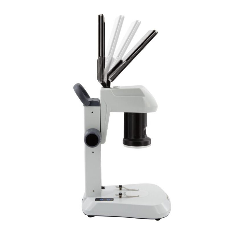 - Integrovaný 9" LCD monitor — sklopný a otočný displej umožňuje pohodlné sledovanie mikroskopického obrazu.