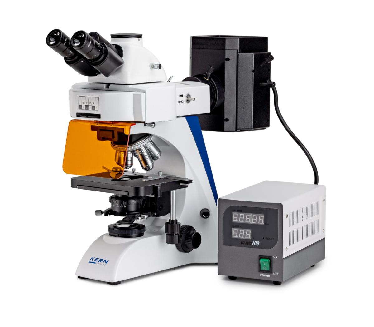 Mikroskop je vybavený výkonným 20 W halogénovým osvetlením pre transmisnú mikroskopiu a 100 W epi-fluorescenčnou jednotkou, ktorá zabezpečuje silnú stimuláciu fluorescenčných vzoriek. Integrované filtre B/G/UV/V umožňujú široké spektrum fluorescenčných aplikácií v biológii, medicíne či výskume.