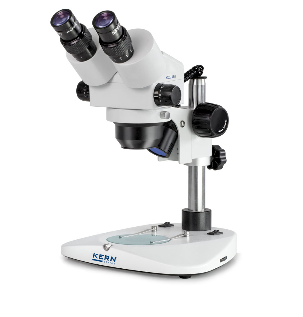 KERN OZL 451 je stereoskopický zoom mikroskop s halogénovým osvetlením, určený pre laboratóriá, školské pracoviská, kontrolu kvality a poľnohospodárske aplikácie. Vďaka stereoskopickému optickému systému poskytuje realistické trojrozmerné zobrazenie, ktoré umožňuje presné pozorovanie detailov povrchu a štruktúry objektov.