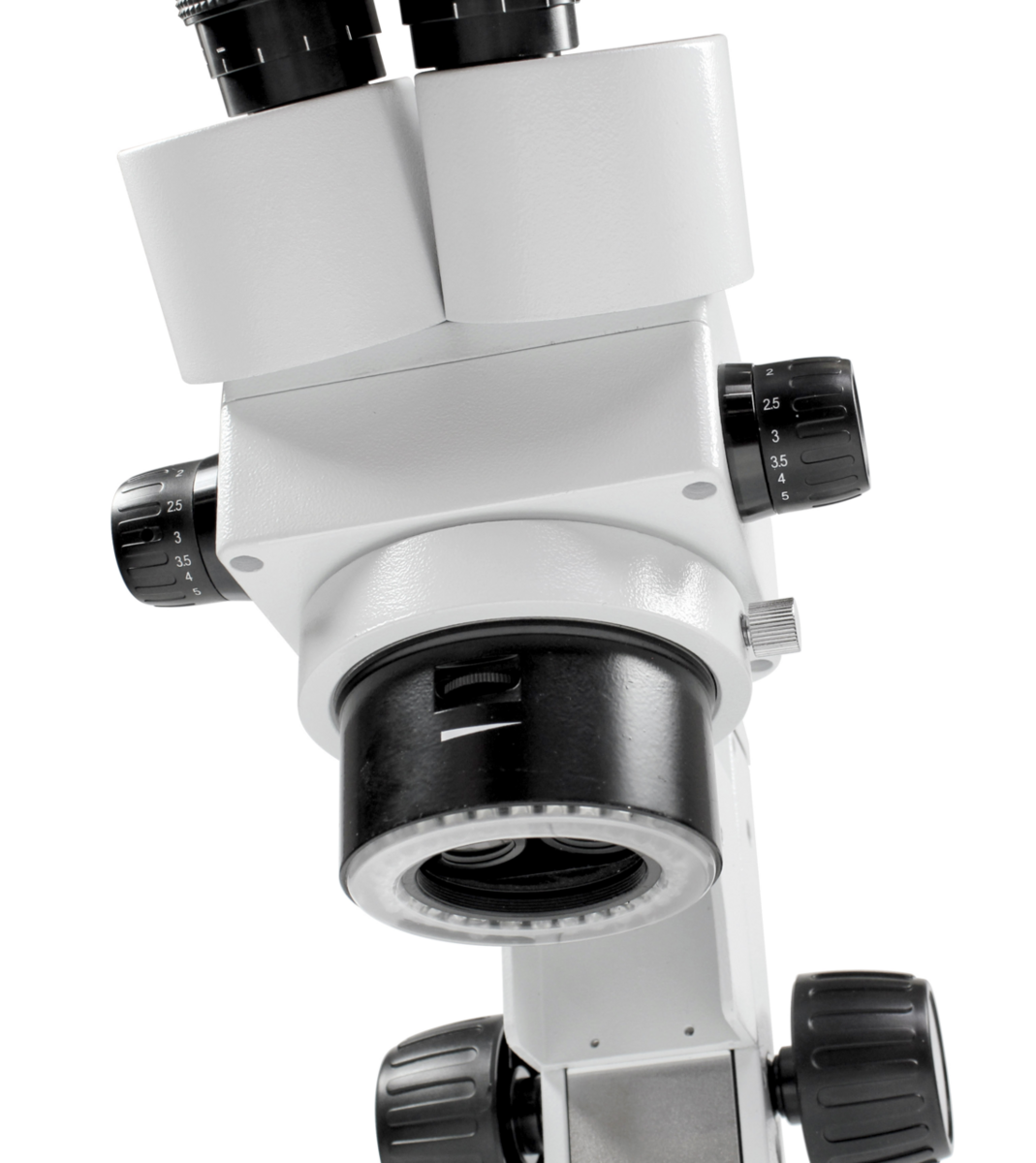 Jednou z hlavných výhod mikroskopu je integrované LED kruhové osvetlenie umiestnené priamo v objektívovej jednotke. Poskytuje rovnomerné a bez-tieňové osvetlenie vzorky, ktoré je ideálne pri pozorovaní technických komponentov alebo biologických vzoriek.
