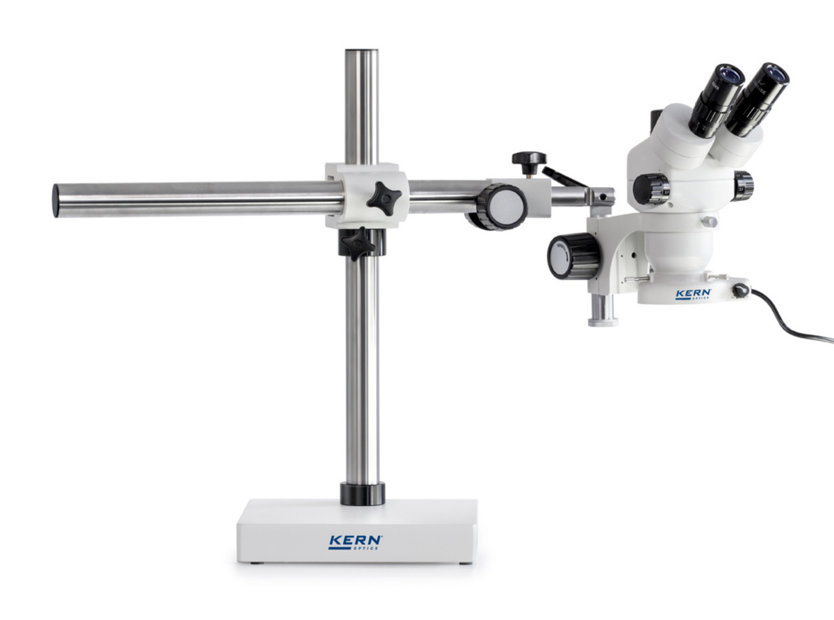 Univerzálny ramenový stojan poskytuje veľký pracovný priestor a umožňuje manipuláciu s rozmernejšími predmetmi bez ich presúvania. Stabilná konštrukcia zabezpečuje presné nastavenie polohy a ergonomickú prácu aj pri dlhodobom používaní.