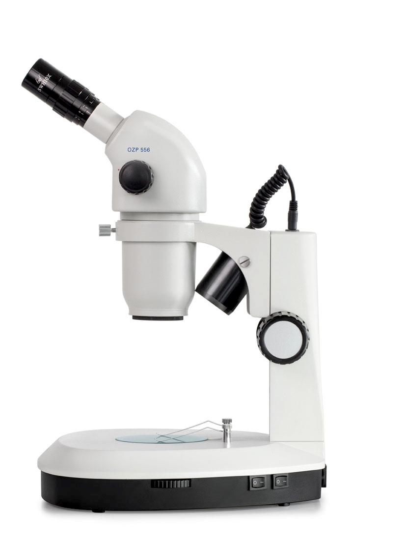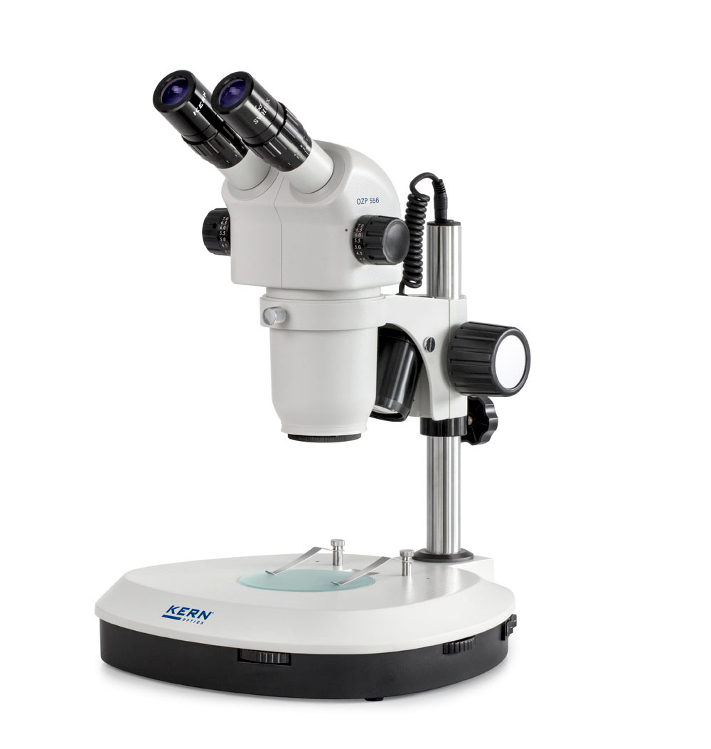 Stereo zoom mikroskop KERN OZP 556 je pracovný stereo mikroskop s optikou Greenough určený pre každodennú vizuálnu kontrolu a manipuláciu s trojrozmernými objektmi. Stabilná konštrukcia a veľká pracovná vzdialenosť umožňujú bezpečnú prácu s nástrojmi priamo pod objektívom.