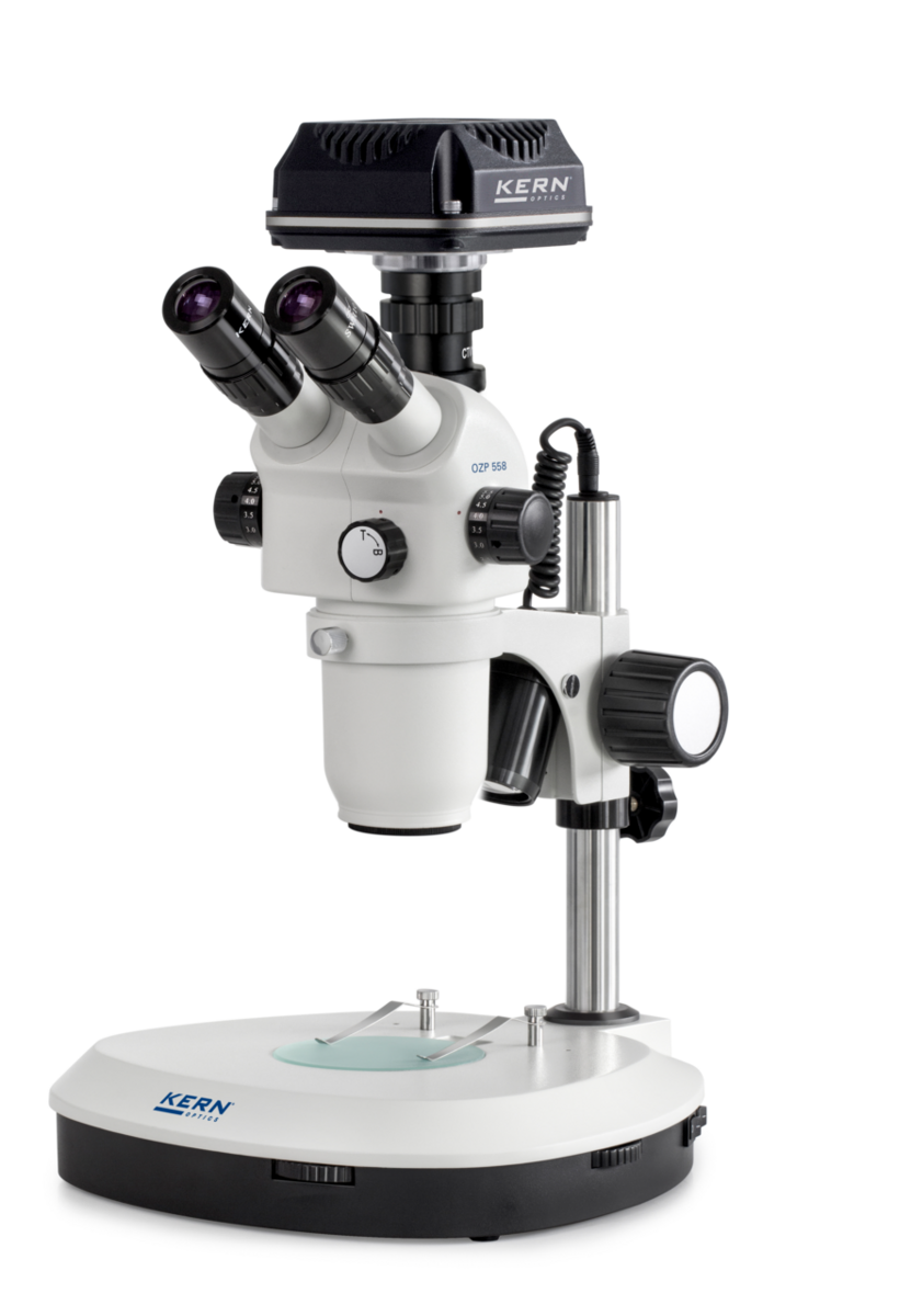 Digitálny stereo mikroskop KERN OZP 558C825 predstavuje kompletné riešenie pre vizuálnu kontrolu, dokumentáciu a prezentáciu vzoriek. Spája optický stereo mikroskop Greenough s digitálnou kamerou a softvérom, takže obraz je možné okamžite sledovať na monitore bez nutnosti ďalších doplnkov.