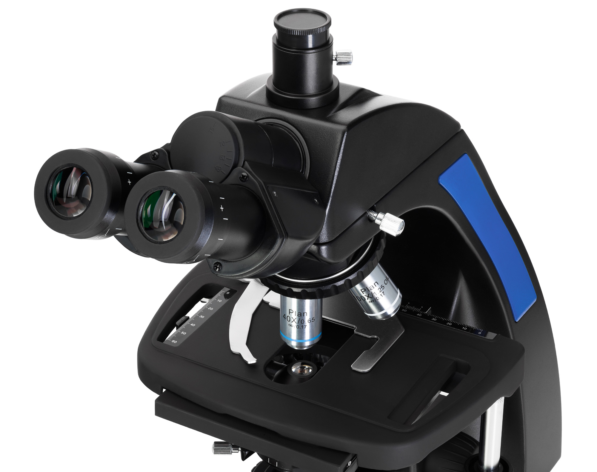 - trinokulárna hlava s náklonom 30°
