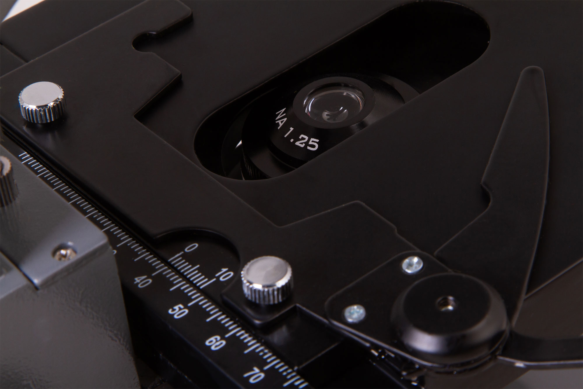 Výkonný halogénový zdroj svetla s reguláciou jasu poskytuje intenzívne a rovnomerné osvetlenie preparátu. Abbeho kondenzor s irisovou clonou umožňuje presné nastavenie kontrastu.