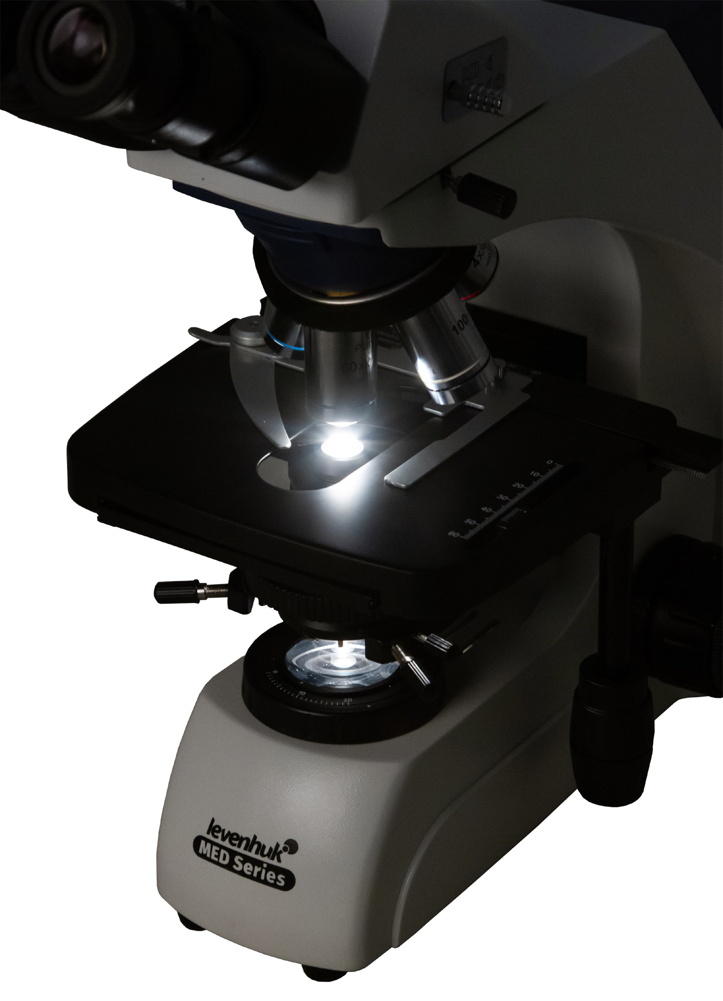 Mikroskop je vybavený spodným halogénovým osvetlením s plynulou reguláciou jasu. Abbeho kondenzor s irisovou clonou umožňuje presné nastavenie Köhlerovho osvetlenia pre optimálny kontrast a rovnomerné osvetlenie preparátu.
