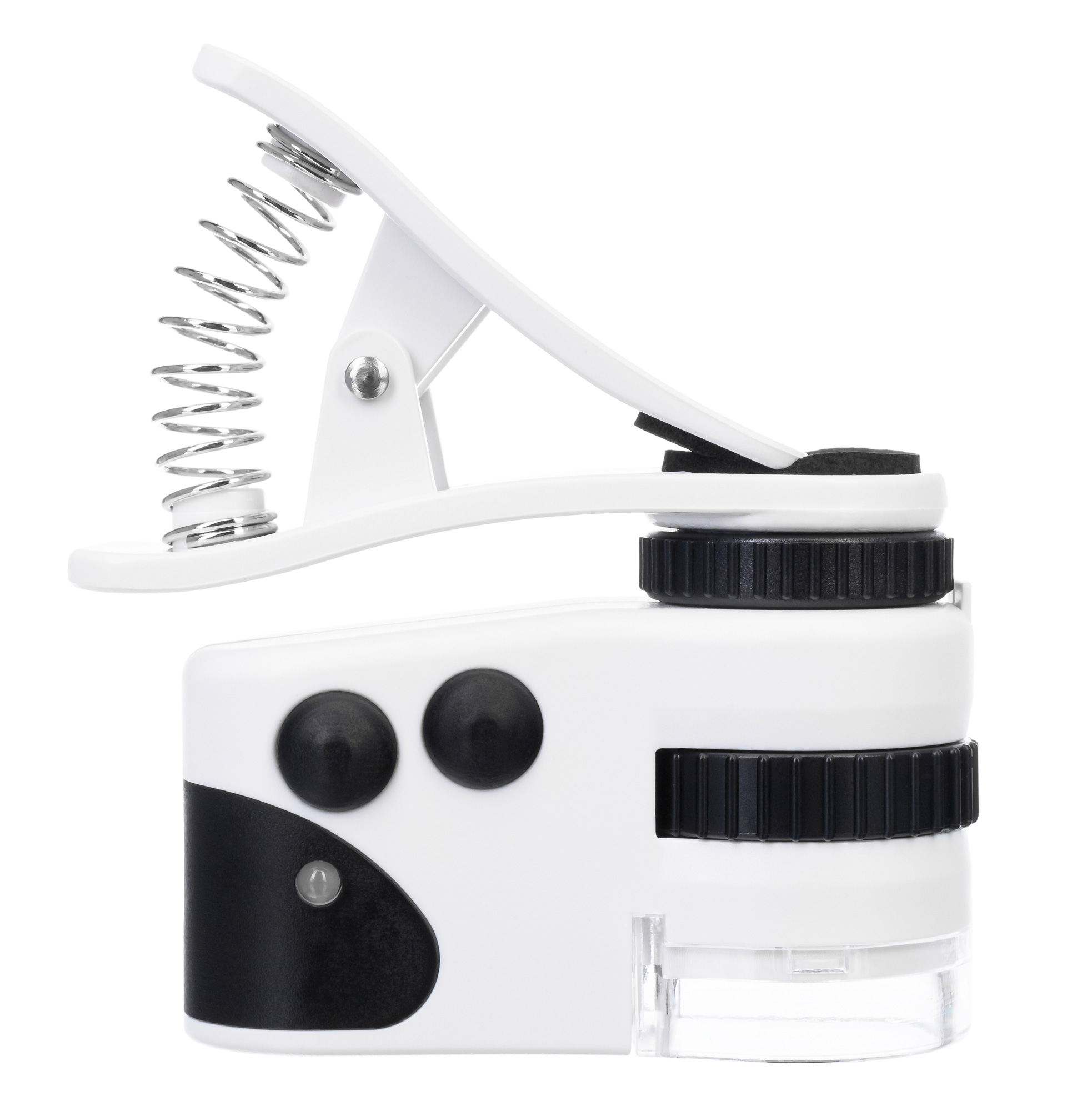 • Vreckový mikroskop so sponou na pripevnenie k mobilnému zariadeniu