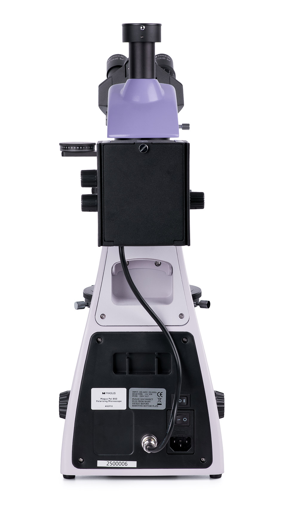 Polarizačný mikroskop MAGUS Pol 850 je profesionálny trinokulárny mikroskop určený na pozorovanie v prechádzajúcom aj odrazenom svetle. Umožňuje prácu v jasnom poli a polarizovanom svetle, vďaka čomu je ideálny na analýzu anizotropných biologických, geologických a polymérnych vzoriek, ako aj nepriehľadných leštených výbrusov s hrúbkou až 15 mm. Presná optika bez vnútorného pnutia, Köhlerova iluminácia a polarizačné príslušenstvo robia z tohto modelu spoľahlivý nástroj pre medicínu, súdne lekárstvo, mineralógiu, kryštalografiu aj petrografiu.