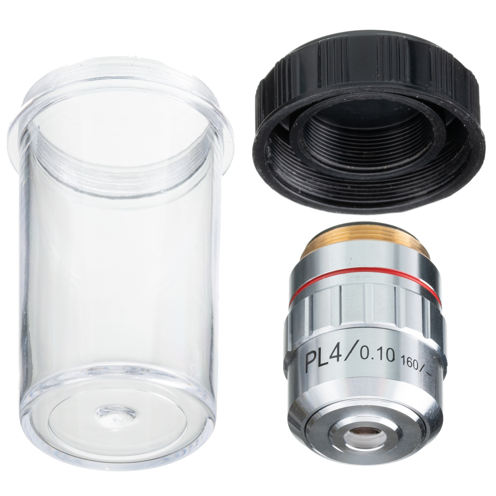 BRESSER Planachromat 4x - tieto objektívyDIN majú kvalitnejšiu optiku, a preto dosahujú mimoriadne vysoké rozlíšenie obrazu. Korekcia Plan zabezpečuje ploché obrazové pole(bez preostrovania medzi stredom a okrajom obrazového poľa) a odporúča sa najmä na fotografické aplikácie.