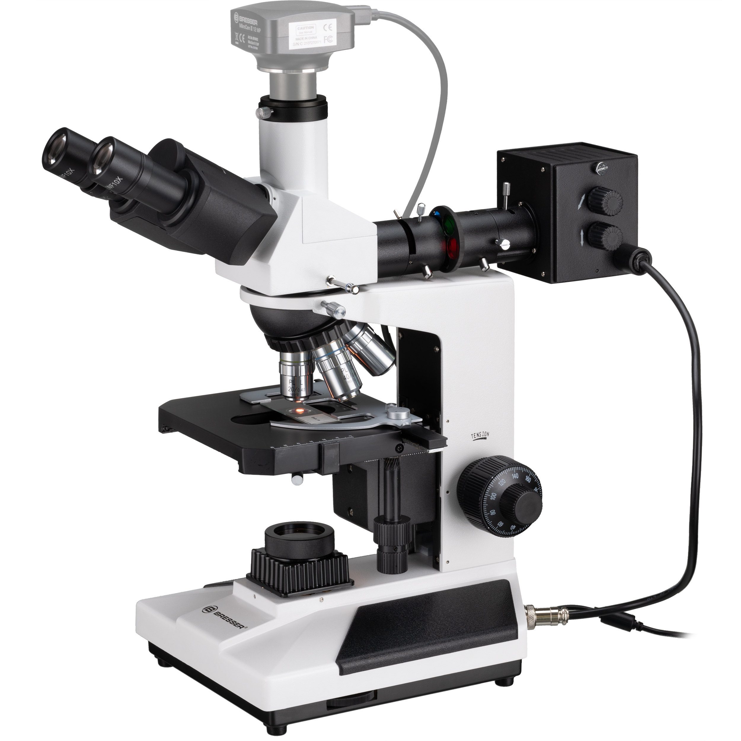 Mikroskop BRESSER Science ADL 601 P je profesionálny mikroskop na prenos a odraz svetla. Základňa mikroskopu obsahuje halogénový osvetľovač prechádzajúceho svetla (20 W), ako aj napájací zdroj a dva plynule nastaviteľné stmievače pre odrazené a prechádzajúce svetlo. Dva trinokulárne nástavce mikroskopu kombinujú obe funkcie osvetlenia, ako aj možnosti fotografovania a binokulárneho pozorovania; sklon okulárových tubusov je 30°. Polarizačný nástavec sa môže používať vo výskume, výučbe a výrobe, napríklad pri výskume v oblasti materiálových vied alebo prístrojového inžinierstva. Halogénové osvetlenie dopadajúcim svetlom (20 W), ktoré prechádza cez objektív na objekt, sa dá upraviť na špeciálne aplikácie pomocou kolieska farebného filtra a kombinácie polarizátor/analyzátor. Celkovo je mikroskop BRESSER Science ADL 601P z hľadiska pomeru ceny a výkonu jedinečným prístrojom, ktorý má aj ďalšie Hlavné parametre typické pre vysokokvalitné mikroskopy: Štvornásobný nosový nástavec, priečne a pozdĺžne pohyblivý krížový stolík s pohonom, koaxiálne zaostrovacie pohony (jemnosť: 200 µm/otáčku), nastavenie medzipupilárnej vzdialenosti a dioptrií a fototrubicu. Voliteľným všeobecným príslušenstvom sú širokouhlé okuláre (WF10x, WF16x), merací okulár (WF10x), rôzne plánovacie achromatické objektívy DIN (napr. 4x, 5x, 10x, 20x, 40x s pružinou, 60x s pružinou, 100x s olejovou pružinou), Abbeho kondenzor (s numerickou apertúrou 1,25; s clonou a prídavnou šošovkou), kondenzory tmavého poľa (suché a olejové), imerzný olej a zariadenie na fázový kontrast.