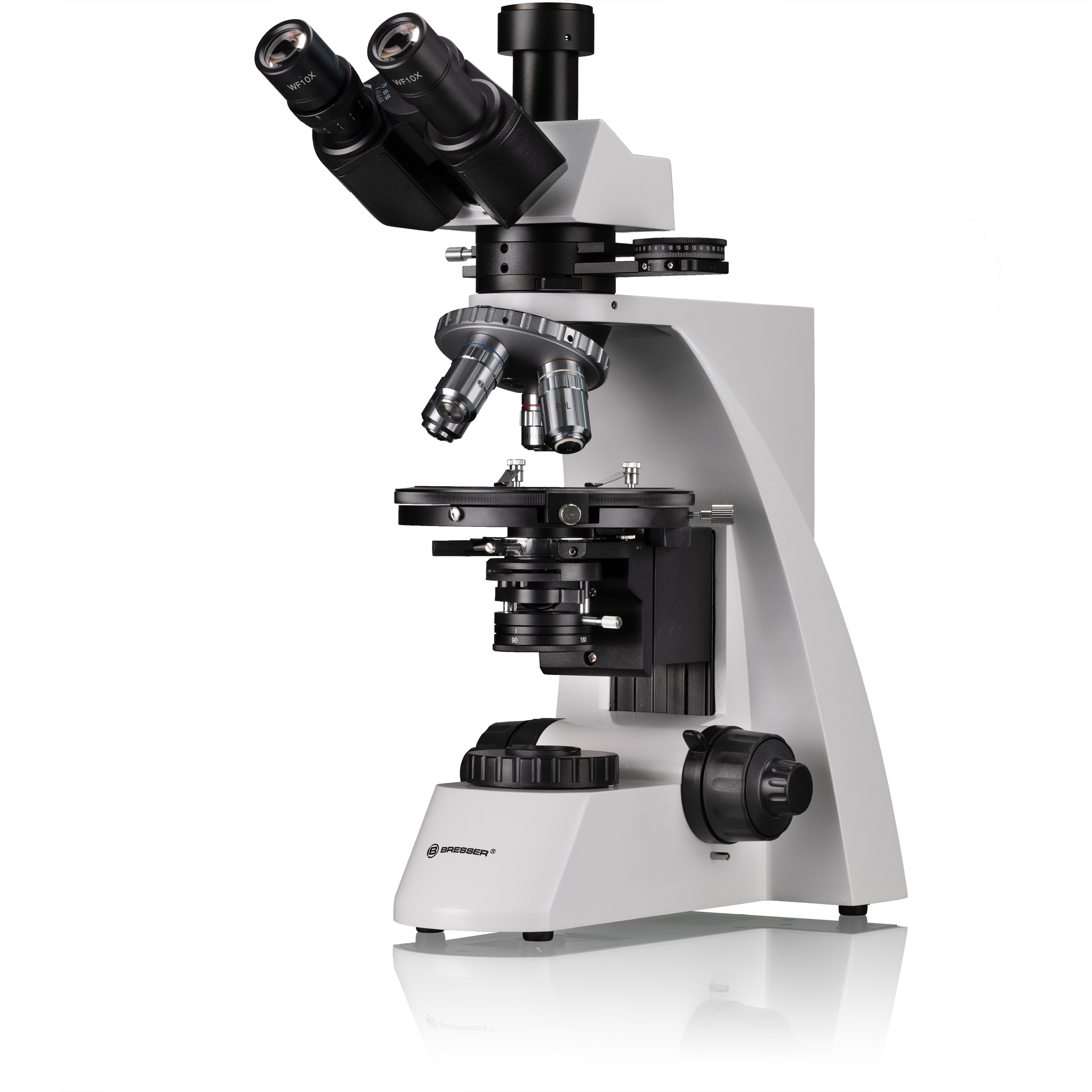 Na rozdiel od bežného svetla má polarizované svetlo preferovanú rovinu kmitania svetelných vĺn. To znamená, že anizotropné objekty, t. j. tie, ktorých pozorovateľné Hlavné parametre sa menia so smerom, sa ukazujú takpovediac v novom svetle: kryštály, ale aj zvieracie vlasy, vtáčie perie, svaly, nervové vlákna a steny rastlinných buniek, ktoré majú preferovaný smer svojich biomolekúl, teraz odhaľujú štruktúry, ktoré zostávajú skryté na bežných snímkach z mikroskopu s jasným poľom. Obrázky vytvorené pomocou polarizovaného svetla sa často vyznačujú fantastickou farebnou žiarou. Polarizačné mikroskopy sa používajú najmä v mineralógii, geológii, biológii a medicíne. BRESSER Science MPO 401 má okrúhly, centrovateľný a plne otočný stolík so stupnicou na kontrolované zmeny orientácie objektu. Osvetľovacia a pozorovacia jednotka obsahuje nastaviteľnú halogénovú lampu (20 W), poľnú clonu na nastavenie Köhlerovho osvetlenia, 360° otočný polarizátor na generovanie polarizovaného svetla, centrovacie zariadenia pre objektívy a nástavec analyzátora na analýzu polarizovaného svetla. Nástavec analyzátora je navrhnutý tak, aby sa do neho dal umiestniť 360° otočný analyzátor a voliteľné vložky (Amici-Bertrandova šošovka pre konoskopiu; kremenný klin, lambda a lambda/4 platne). Širokouhlé okuláre (WF10x) sú tiež namontované na trinokulárnej hlavici mikroskopu pod uhlom 30° a sú vybavené nastavením medzipupilárnej vzdialenosti a dioptrií. Poskytujú pozorovateľovi jasné, verné farby, detailný a ostrý obraz. Príslušenstvo MPO 401 zahŕňa okrem uvedených vložiek a okulárov aj merací okulár (WF10x), Abbeho kondenzor s clonou dúhovky, špeciálne polarizačné objektívy DIN (4x, 10x, 40x s pružinou, 100x s olejovou pružinou), filtre (modrý, matný) a imerzný olej.