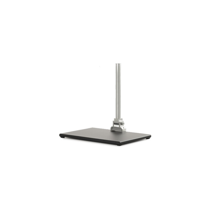 - Stredný objektív so zoomom s pripojenou obrazovkou a prstencovým LED osvetlením je namontovaný na ozubenom systéme, ktorý je umiestnený na kovovom stojane s rozmermi 30 x 180 mm