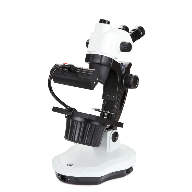 Špecializovaný dozadu naklonený stojan gemmologického prístroja Nexius Zoom poskytuje 30 W osvetlenie, ktoré je naklonené smerom k obrobku. To umožňuje skúmať drahé kamene v dokonalých podmienkach tmavého poľa. Tento stojan je k dispozícii aj s 1 W LED alebo 7 W žiarivkovým dopadajúcim svetlom.