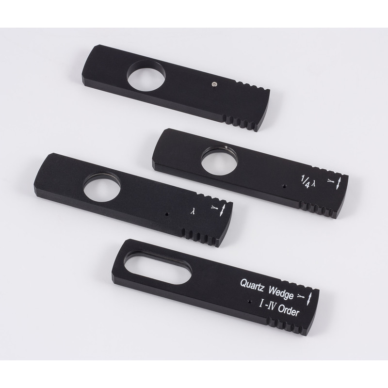 - Drehbarer Analysator 360º, Bertrand-Linse 0,5X und Schlitz für Kompensatoren